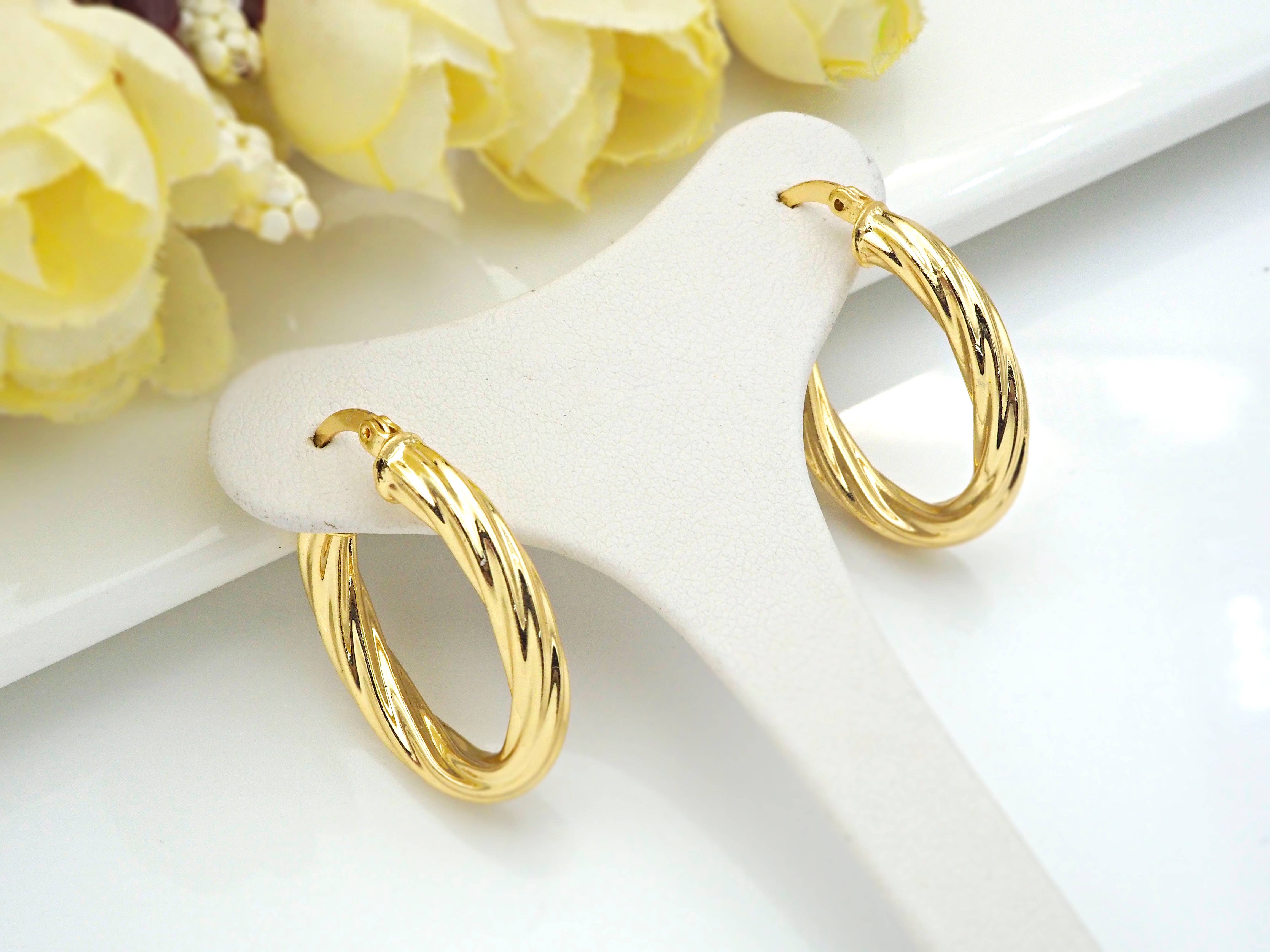 The earrings are nice, but the smaller gold hoops are better quality.