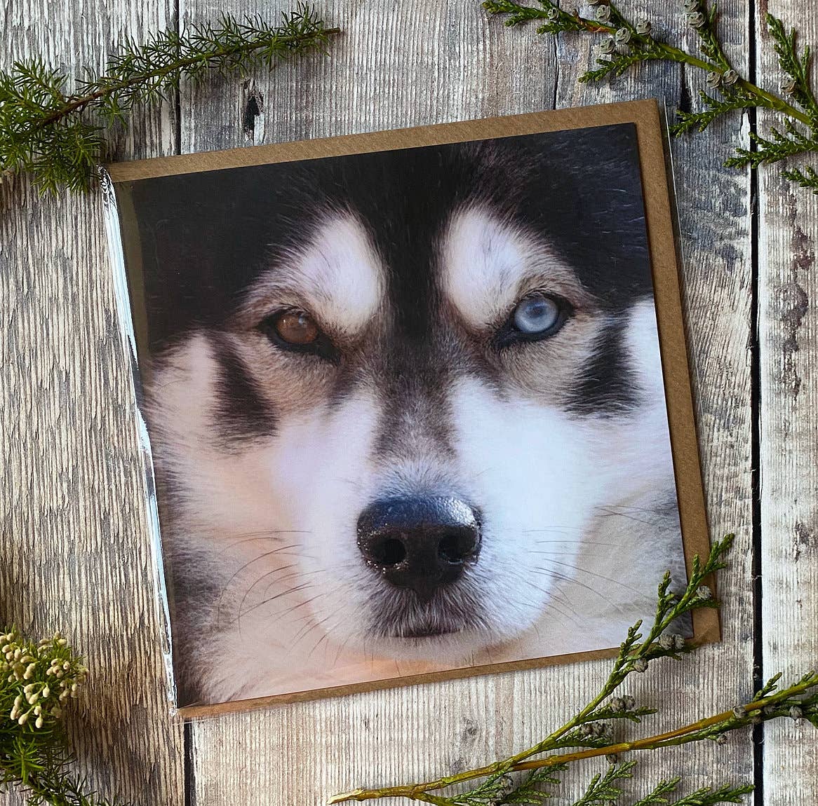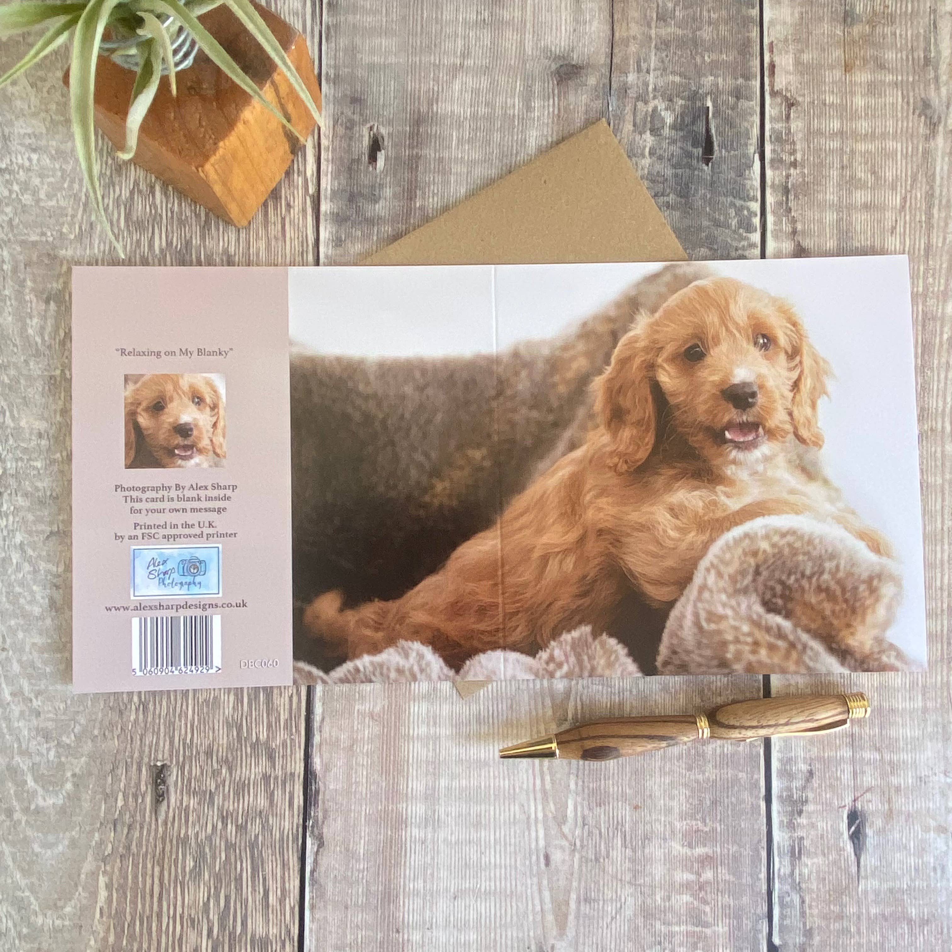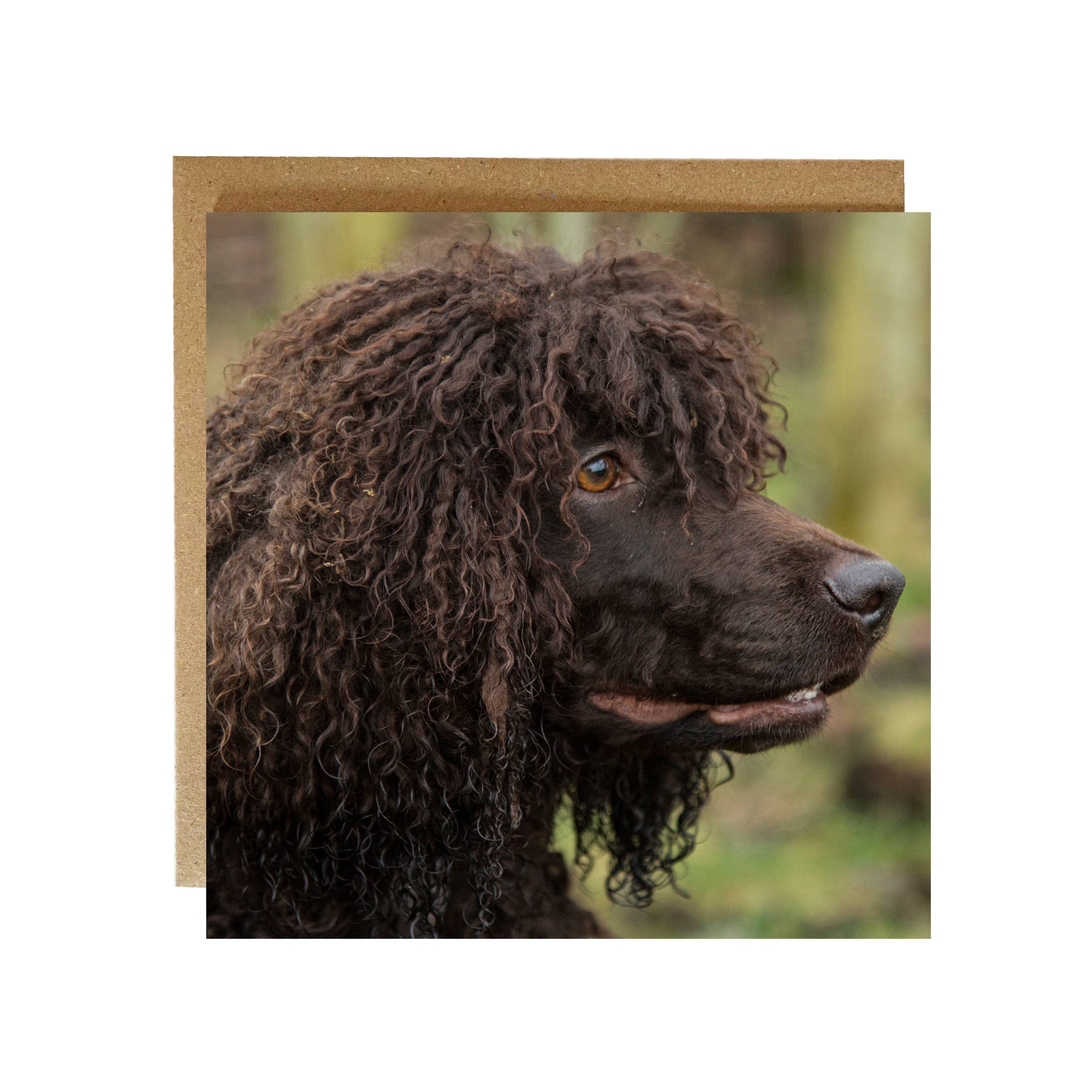Birthday card from the dog - card reads Happy Birthday along the top and From the one that loves you the most along the bottom of the card. The card is blank inside for your own message and comes with a brown recycled envelope and is in a biodegradable cello bag. Printed in England by FSC approved printers on a high-quality 300gsm card.