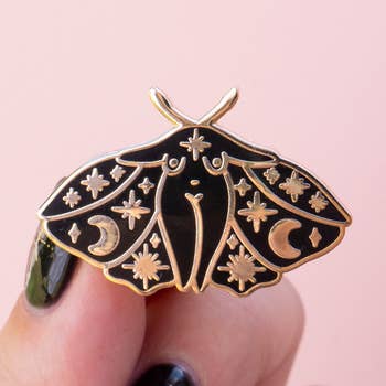 Shannon Talbott - Wholesale Lapel Pin/Button - Luna Moth Floral Bug Butterfly Nature Goth Enamel Pin - Gold0