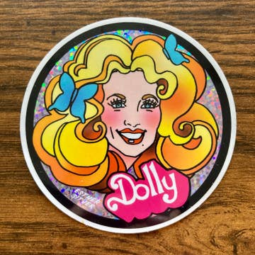 This listing features a vinyl sticker ode to the iconic national treasure that is Dolly Parton! This die-cut sticker features an original illustration of Dolly Parton surrounded by a thin white border. This sticker measures 3 inches tall and is professionally printed in full color, suitable for indoor and outdoor use.