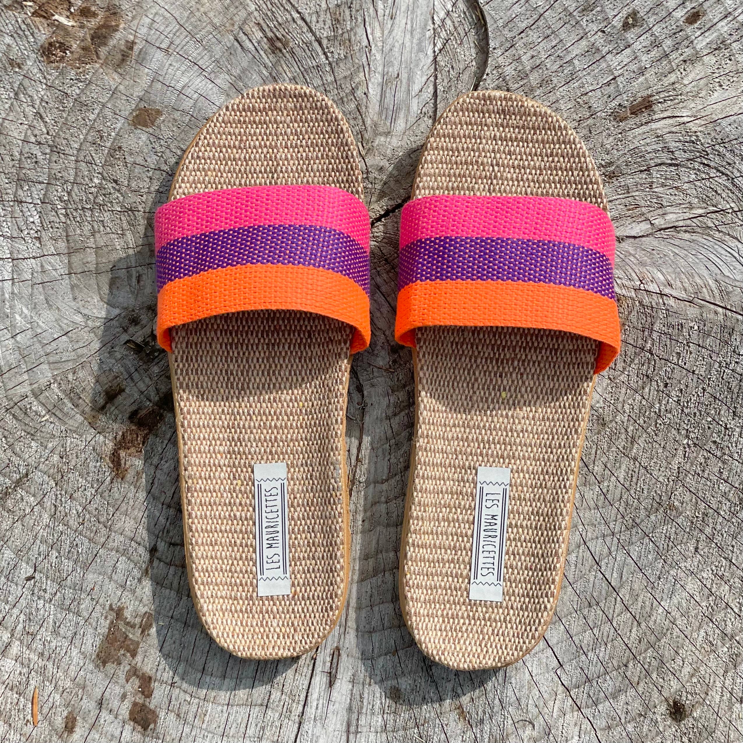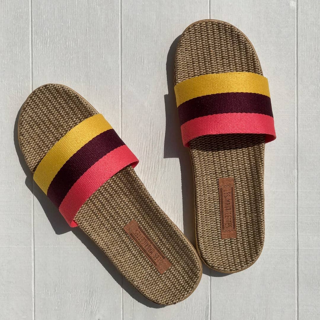 Marquerite chose flashy Mauricettes, yellow with touches of pink and she loves it! Yes, she loves everything from her light sandals, the Eva sole, the softness, the little massage that linen does under her feet and the style to the tips of her fuchsia varnished nails. And as soon as an opportunity presents itself, she offers it around her. She says happiness can be shared, and with these pretty tap dance, she is always sure to make one or a happy one! specifications Soft braided linen insole Ultra-soft non-slip sole Comfort: Feet as light as a feather Comes in a pretty burlap pouch Outsole material: EVA (ethylene-vinyl acetate) Weight of a pair of Mauricettes: 240 grams of comfort! Mauricettes are made in China and stylized in France Braided rope top Color: yellow/fushia