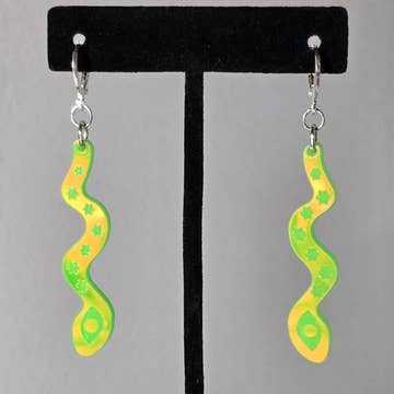 The drop length is about 2.5 inches (64 mm). Materials: Lightweight acrylic with stainless-steel (nickel-free) hooks. Shipping: Each pair is made to order to reduce waste, please allow 15 days for processing Each pieces is handmade and no two pieces will look exactly alike.