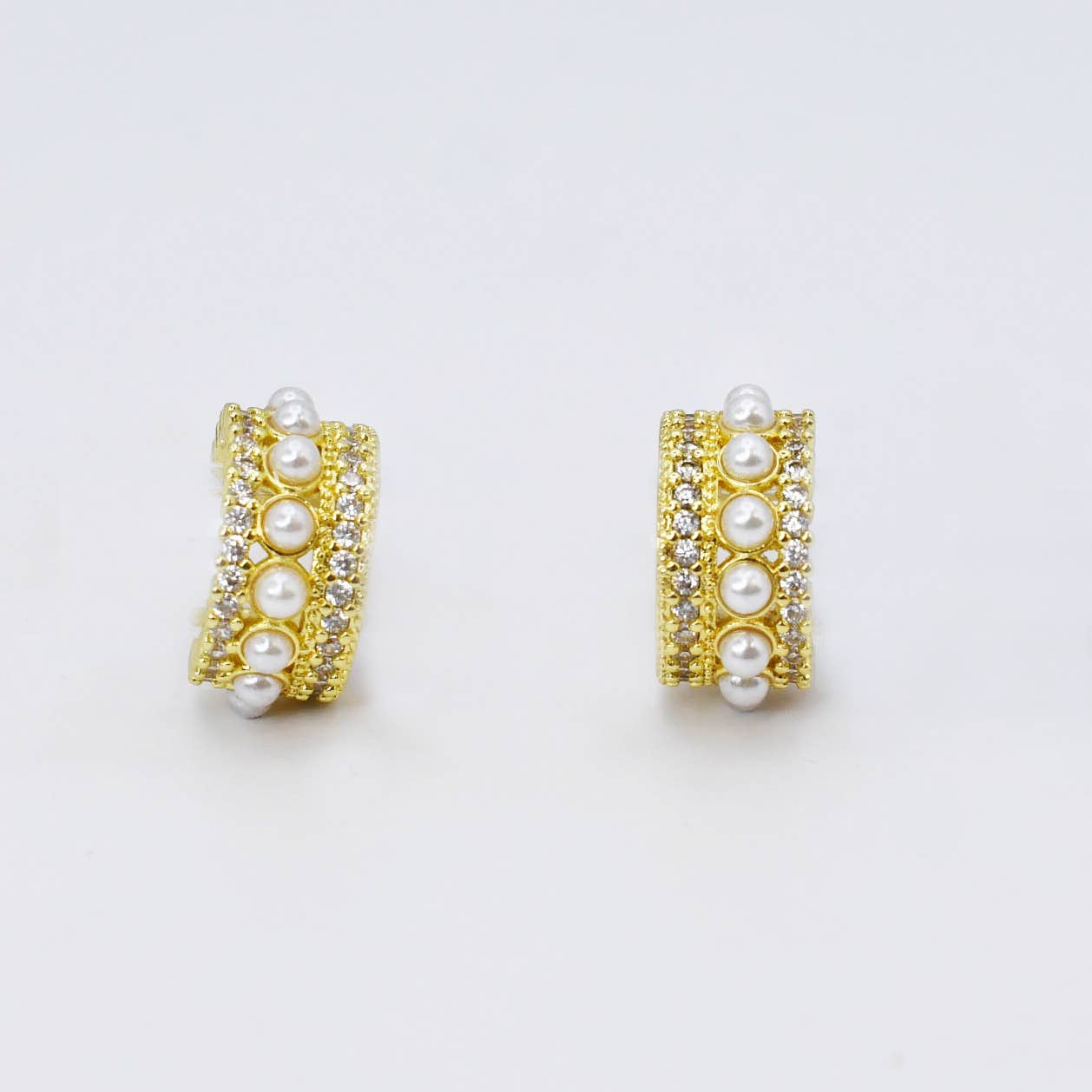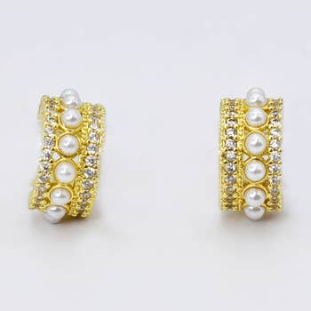 Chunky Diamond Pearl Small Huggie hoops