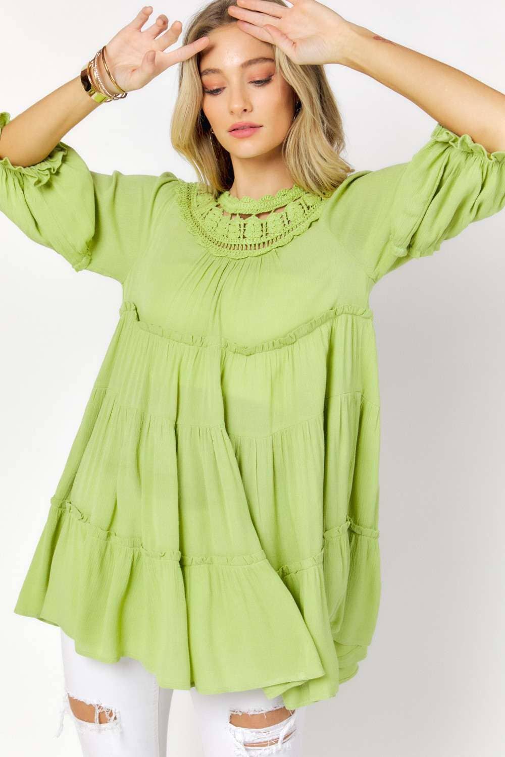 Wholesale Short Sleeve Empire Waist Shirring Top