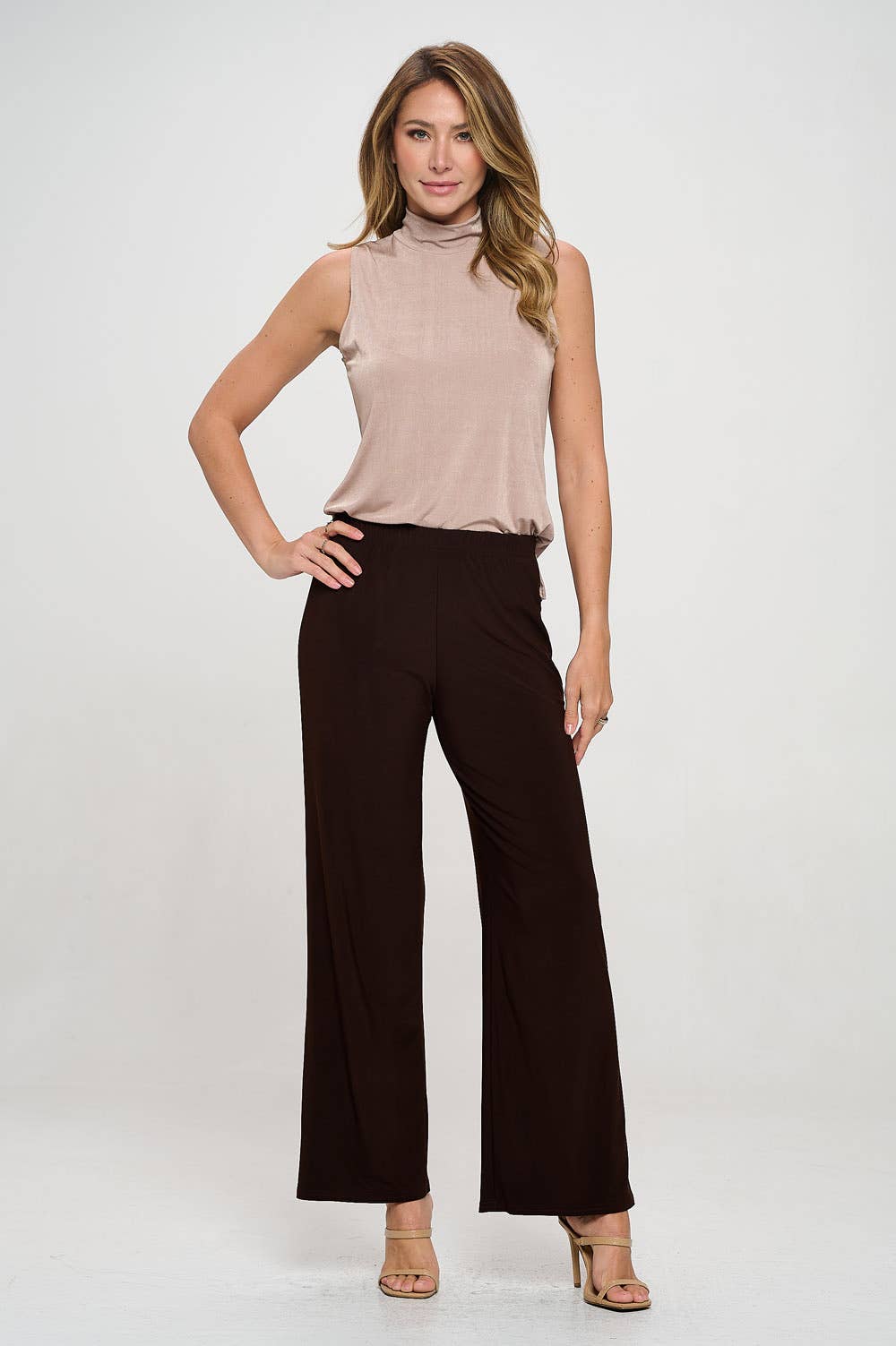 95% POLYESTER 5% SPANDEX SOLID FLARE PANTS WITH WIDE WAIST BAND AND SIDE POCKET DETAIL MODEL SIZE: HEIGHT 5'7", BUST 34", WAIST 24", HIPS 34" WEARING SIZE: SMALL REGULAR & PLUS AVAILABLE *The garment color may differ slightly upon arrival due to being taken with professional lighting also depending on what device you maybe using to shop*