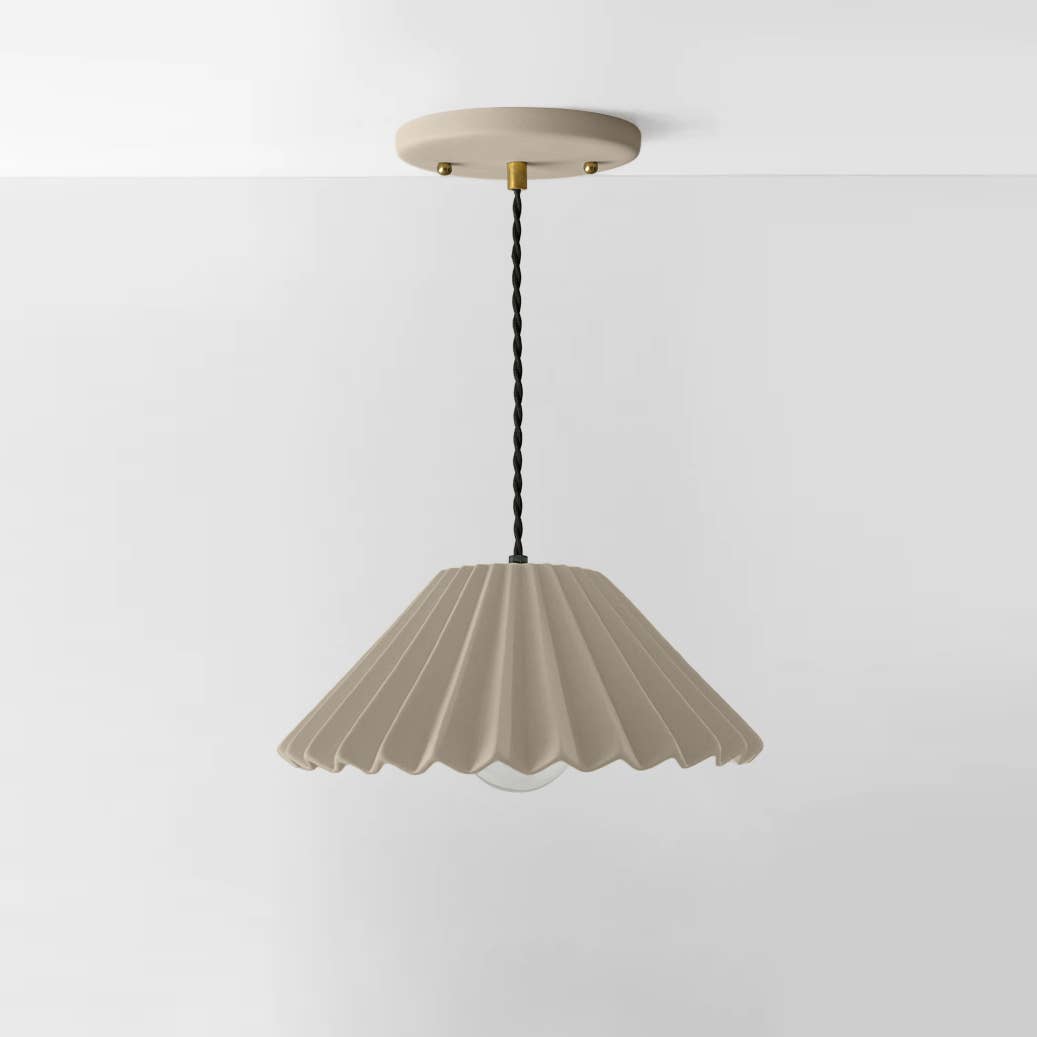 Inspired by the graceful form of the lily of the valley, Vallea is a handcrafted porcelain fixture designed to bring organic beauty into any space. Key Features: Handcrafted and made to order in Canada Surface mount / flush mount installation Unglazed matte porcelain exterior with glazed interior Minimalist floral shape for clean, sculptural lighting Hardwired with included mounting hardware One E-26 socket (bulb not included) Fully dimmable (up to 60 watts) Dimensions: Height: 10.25 inches Diameter: 11 inches Note: Socket protrudes approx. ½” into ceiling or wall and requires a standard junction box. Not suitable for solid surfaces without a junction box. Color Options: Available in Bone, Dune, Fog, and Shadow Similar Benjamin Moore™ match for Bone: Dove White OC-17 *Please note that Bone is NOT stark white, but a very subtle off-white. Due to the natural properties of clay, slight variations in colour and finish are to be expected and embraced as part of the handmade process.