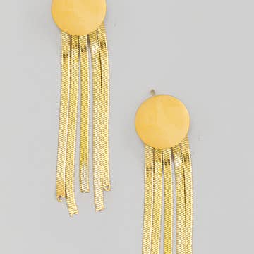 These 18k gold-plated statement earrings feature brushed circle and marquise shapes linked together, creating a look that’s both classy and casual. At a collarbone-grazing 4" x 1.75", they’re solid yet dynamic, bringing a touch of fabulous style to any outfit. Handmade in Brazil, they offer a perfect blend of elegance and effortless flair.