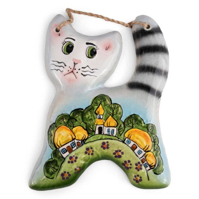 Vivid Meow is a painted cat metal wall art piece made for both indoor and outdoor decorative use. With bright contrasting colors and beautifully painted floral details, Vivid Meow will make a statement in any home, patio, or garden area. * Fair Trade Federation-certified Haitian metal art * Steel metal art painted and coated with a protective gloss varnish * Dimensions: 10" L x 7" W * Handcrafted at the Village Artistique de Noailles in Croix-des-Bouquets, Haiti by Haitian metal artisans A folk art that dates back to the mid-20th century, Haiti metal art today is the art of recycling and transforming discarded steel oil drums into ornate metal artwork. As handmade Haitian metal art, there will be slight variations from one piece to another, adding to the unique character and value of each piece of metal art.