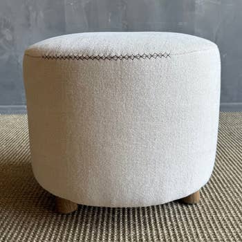 Charlotte Velvet Round Ottoman With Gold Base Black for wholesale on Faire