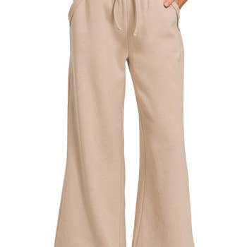 SKU : P7234 *** New Style *** Fleece Sweatpants. FLEECE EXPOSED SEAM WIDE LEG SWEATPANTS - DRAWSTRING ELASTIC WAIST 60%COTTON, 40%POLYESTER