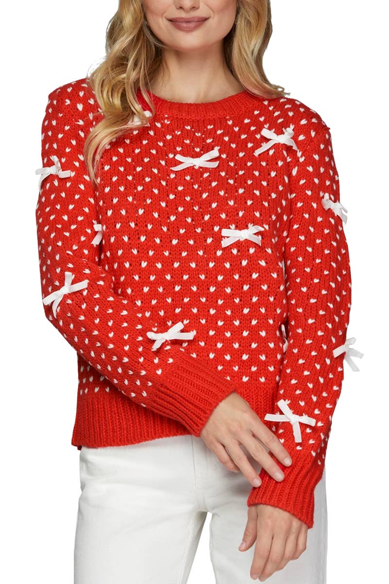 Bow Embroidered Sequin Detail Knitted Sweater VT81484M