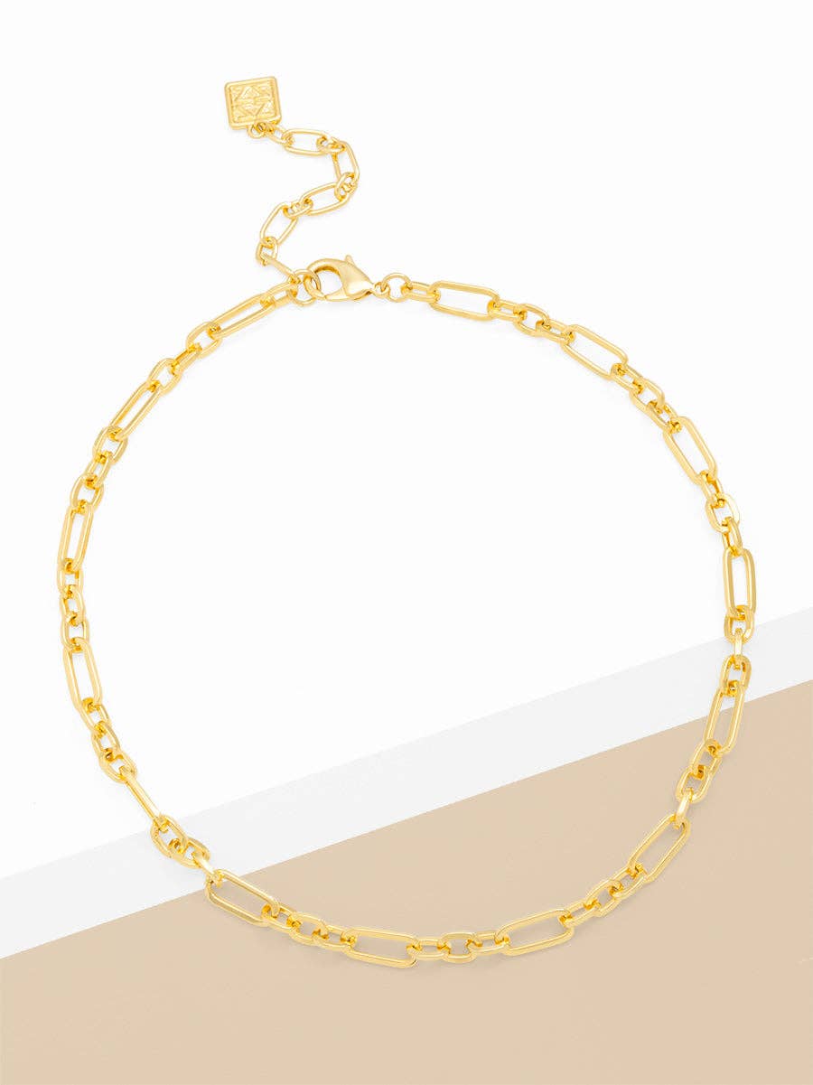 Details Material: 14k gold plated brass Style: Midi Paperclip chain Length: 16" + 2'