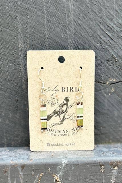 Sage Green & Silver Globe Beaded Hoop Earrings