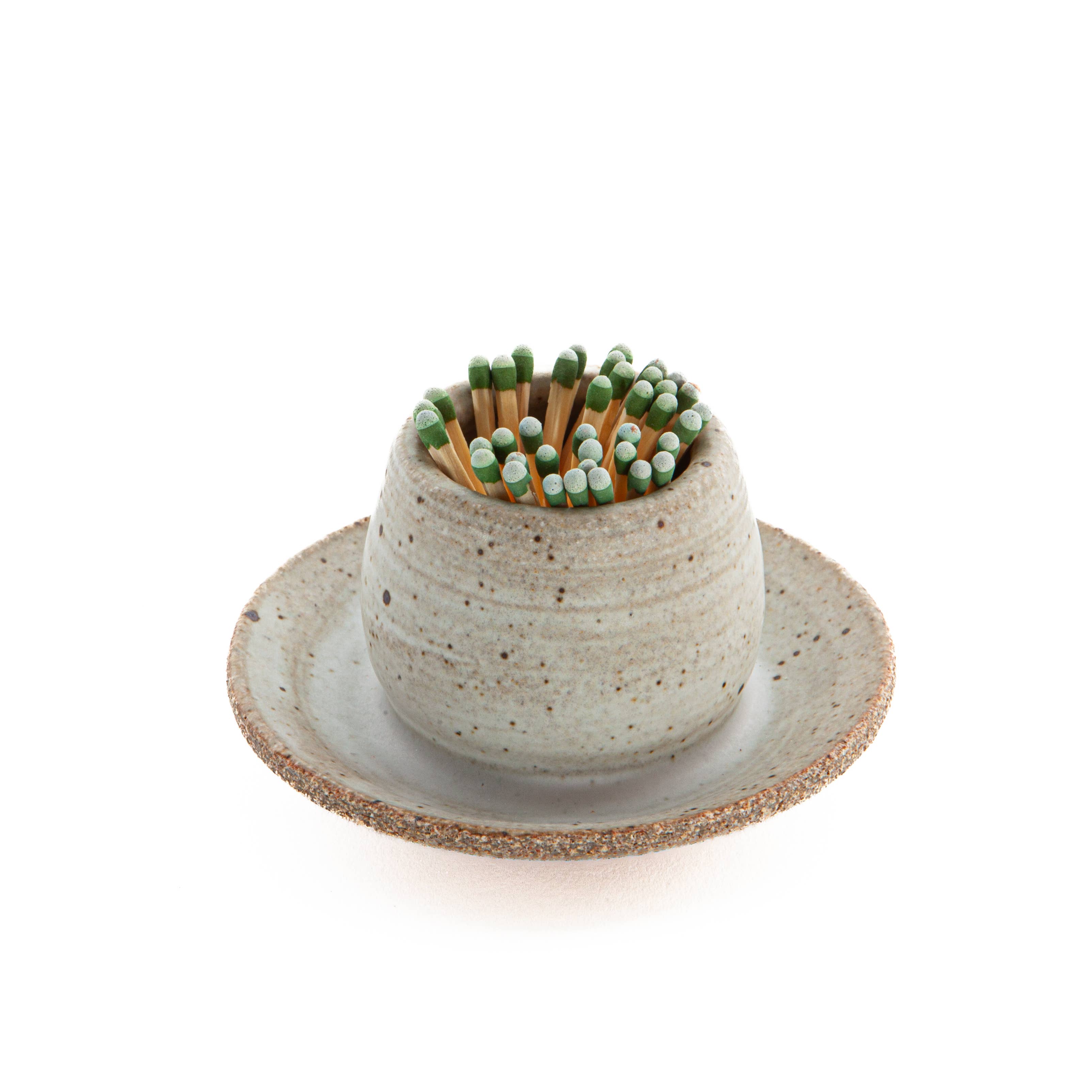 Meet the Original Candle Match Holder with Rainbow Matches! Each match stick holder is hand-poured concrete with a cork bottom to protect your surfaces. Each set comes with approximately 70 matches included. There is also a striker pad attached to the side of your holder for easy lighting. * Matches Included! Each vessel is approximately 1.85 inches high and 2 inches wide. Each vessel is handmade so color variations and slight imperfections may be present. We think that helps to make them one of a kind. Safety Reminder: First, always remember that matches are flammable and should be used with caution. Strike away from your body and other flammable materials, including other unlit matches. Keep away from children and pets.