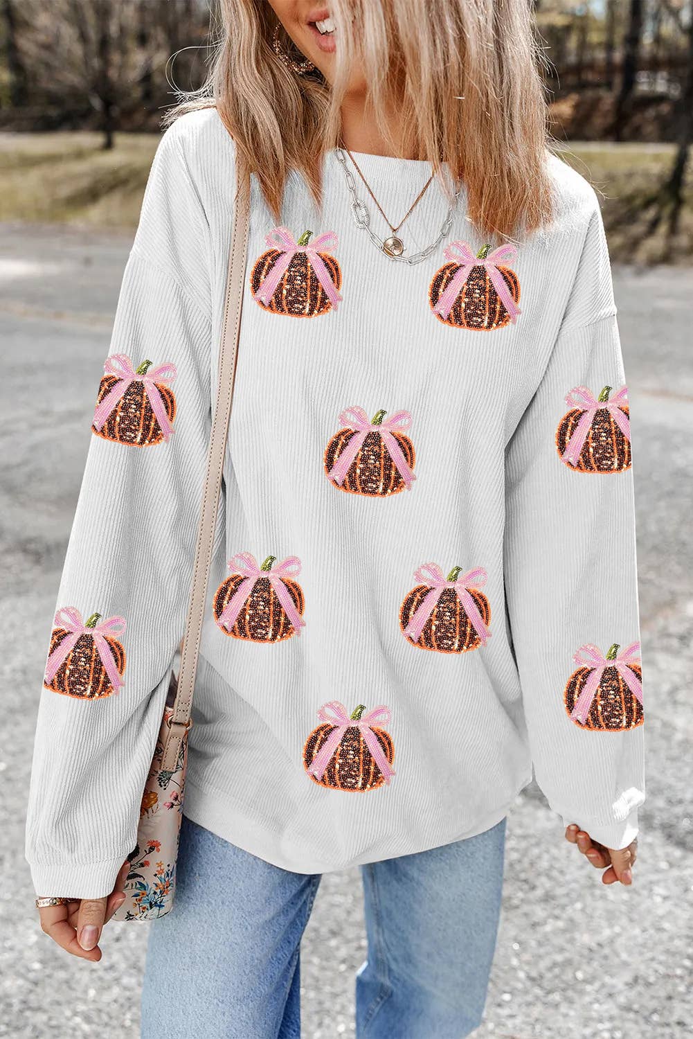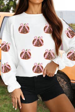 Wholesale Preppy Blue Floral Pumpkin Tees & Sweatshirts