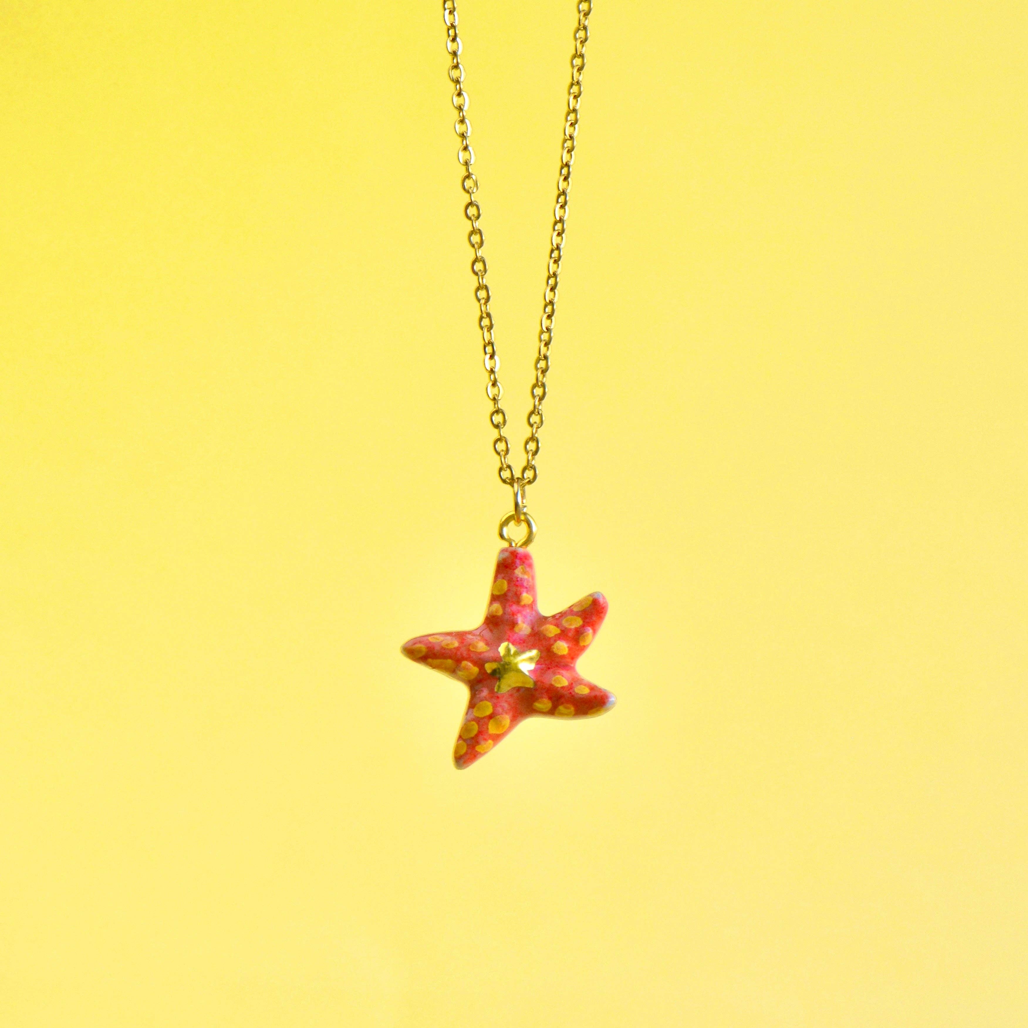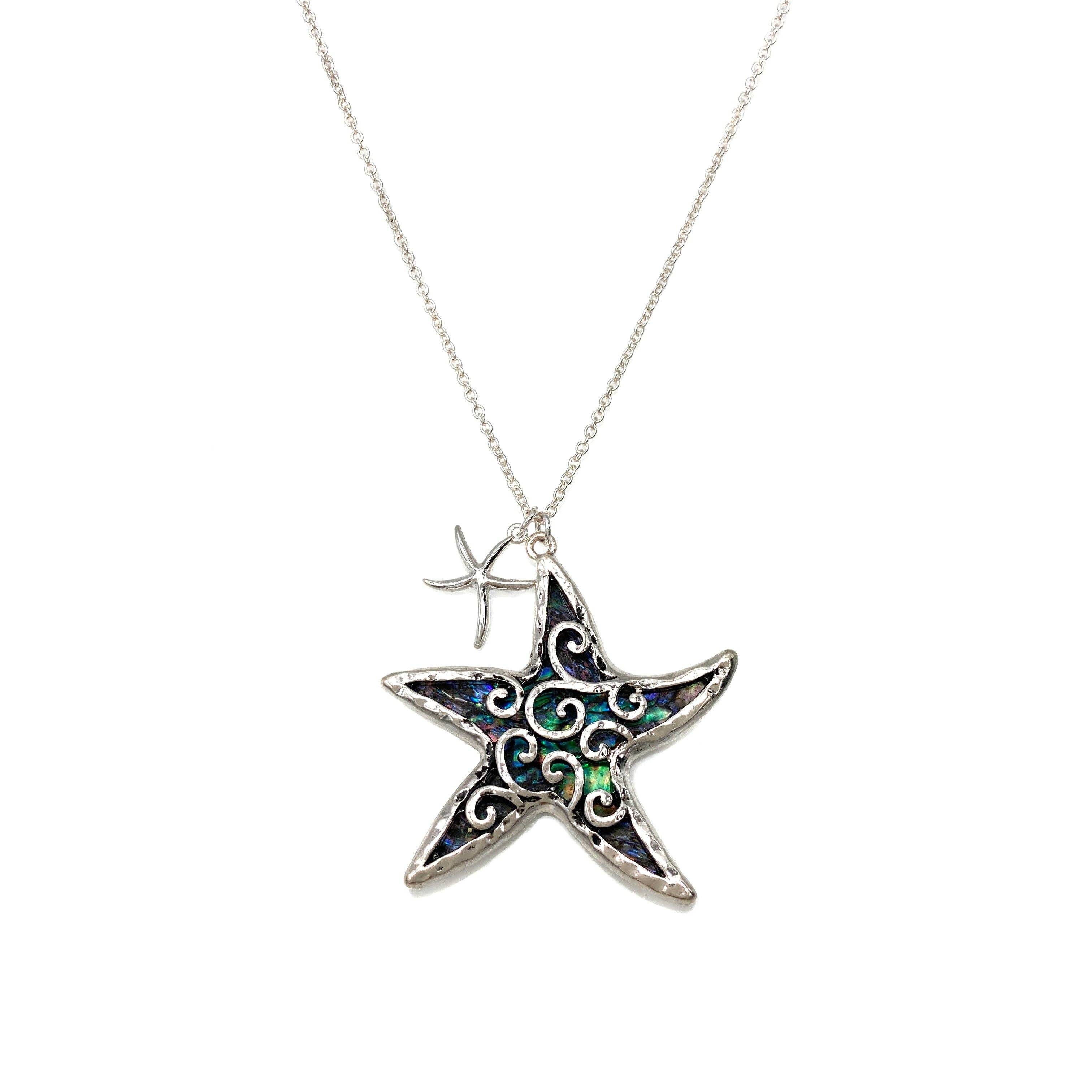This beautiful pendant is made from an exquisite murano glass and features a unique sea star design. It is a great piece of jewelry to add to your collection. The glass is hand-blown and carefully crafted to create a stunning piece of art by the master glassmakers. With its intricate details and a smooth texture, it will surely add a whimsical look to any ensemble. The vibrant colors and intricate details will make this pendant a conversation piece. It is sure to add a touch of elegance to any outfit. * Dimensions: 50mm L x 12mm W x 50mm H; Cord/Chain Length: 18in,Extender Chain: 2in * Materials: Glass; Metal(s): Alloy * Country of Origin: China