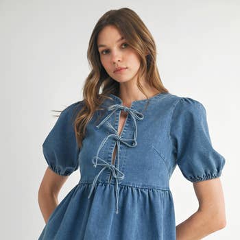 WHOLESALE COLLARED TIE FRONT STRIPE DRESS