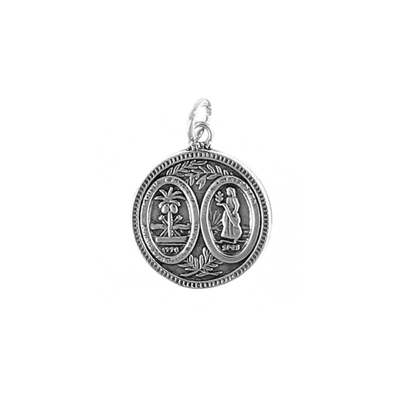 Sacred Heart Token Charm Nickel plated brass Includes hole for hanging by cord or necklace These Beautiful Medallions of The Sacred Heart will make a wonderful gift for any occasion. Measures: 1.75" Circumference MOQ: 3