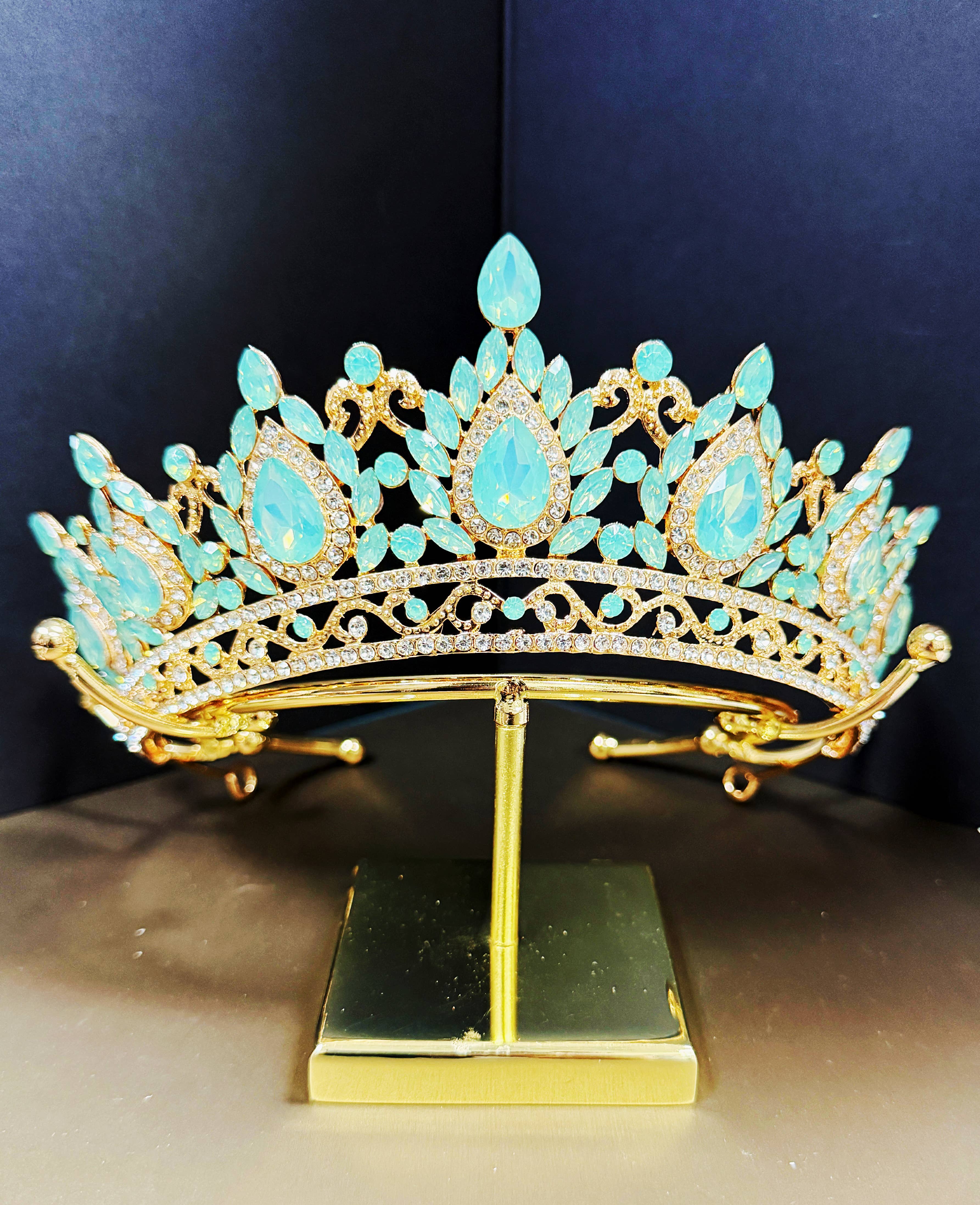 Bridal Red Tiara, Luxury Gold Crown, Prom, Birthday Party