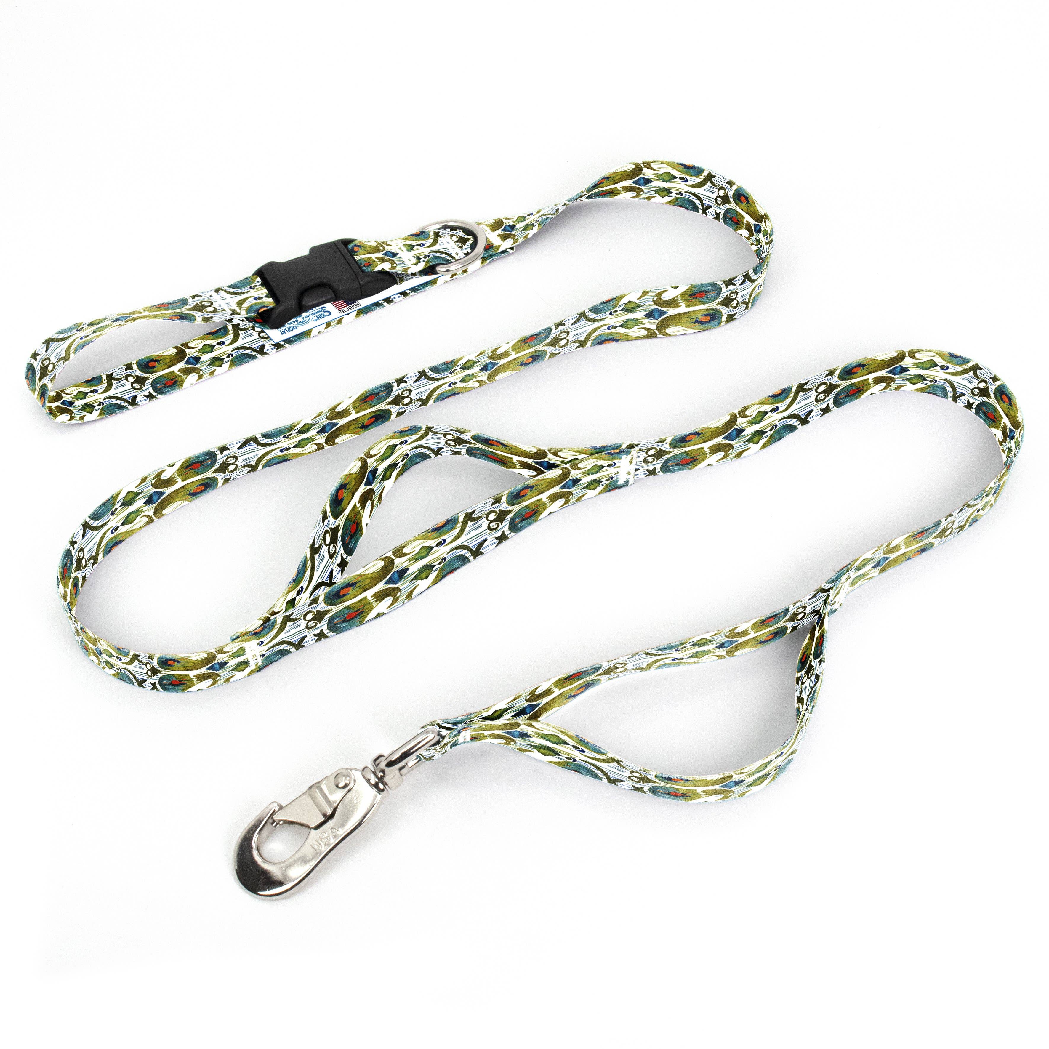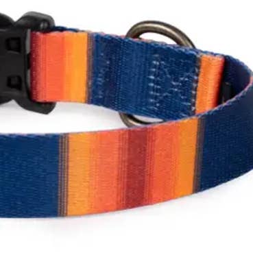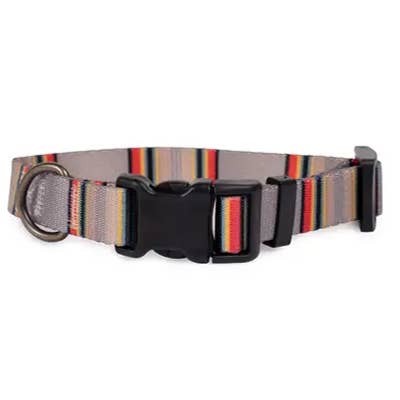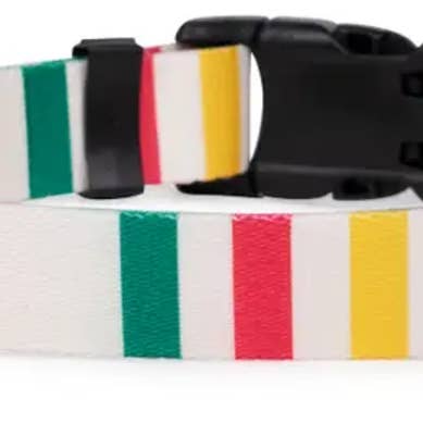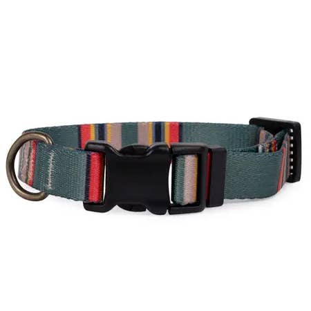 This leash is perfect for dogs (and their owners) that love adventure in the neighborhood, a walk in the park, or a dinner date at your favorite dog friendly restaurant! 100% recycled polyester webbing is lightweight and features the bold colors of the Pendleton National Park stripes. Clips at top and bottom converts the leash from 6’ to 3’ length. The D-ring at the handle is perfect for carrying waste bags or your keys. Easy care, just wipe with a damp cloth to clean. Matching collars available. Proudly made in the USA. 100% recycled polyester webbing Antique brass hardware Adjustable Matching collar available Made in USA Sizes available: 3/4” Wide or 1” Wide