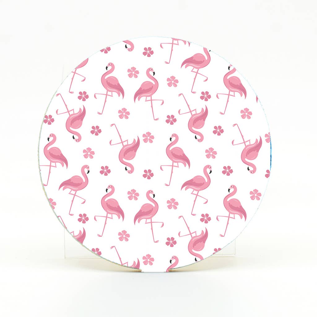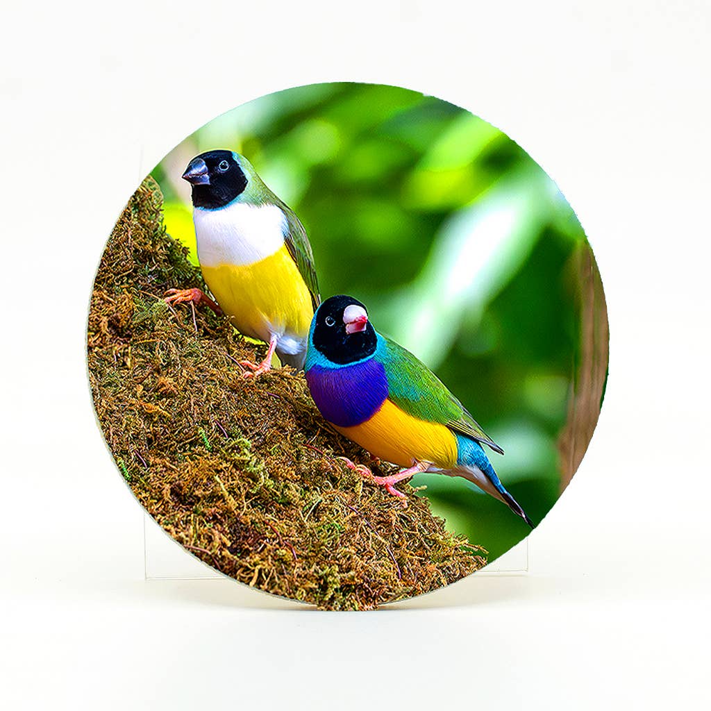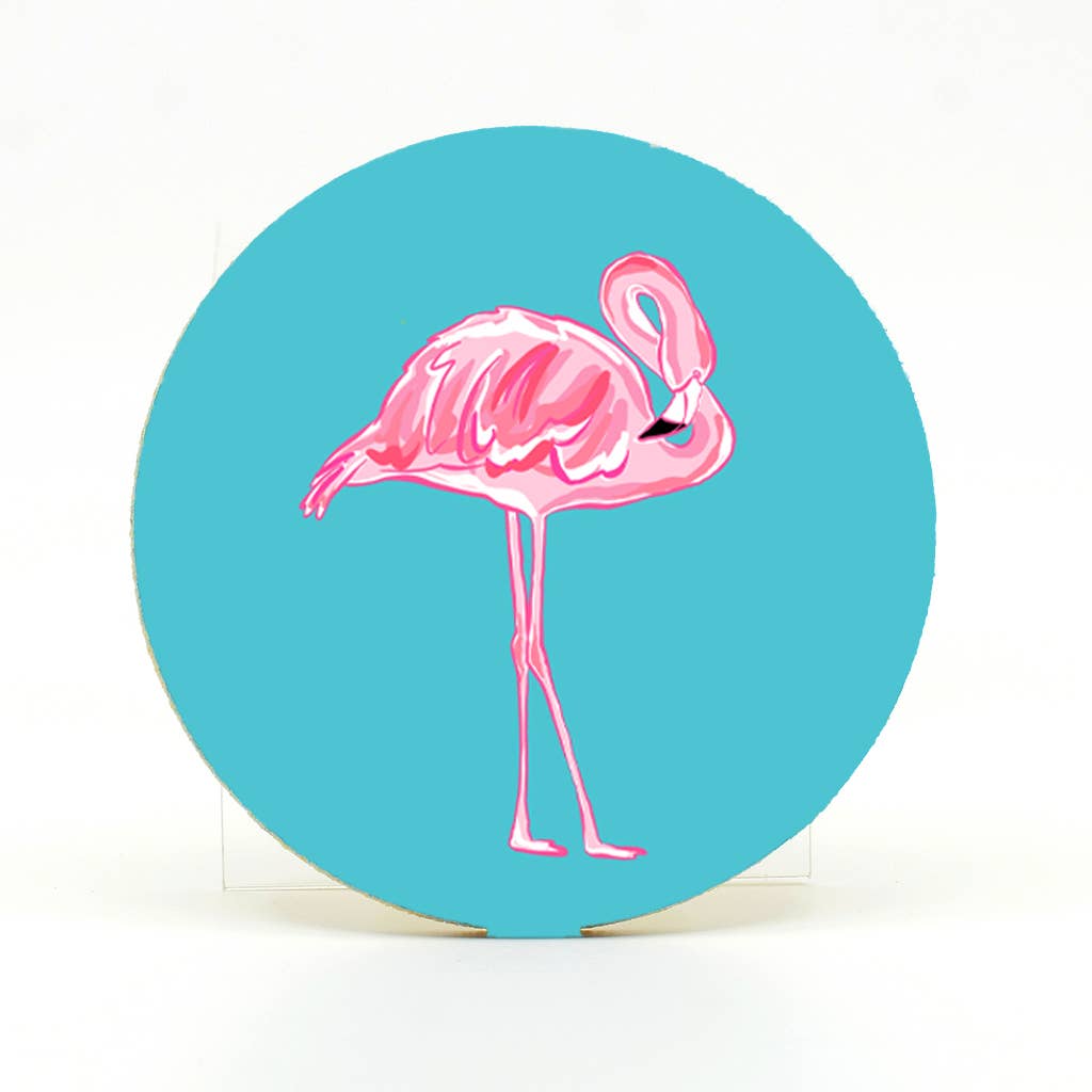 A photograph of Rooster in Key West on a rubber round home coaster. This home coaster protects furniture from leaks and spills from your cup or glass. The top material surface is polyester with an open cell rubber backing. Photographed by Mike Ring. The photographic home coaster is printed in my Florida Production Studio.