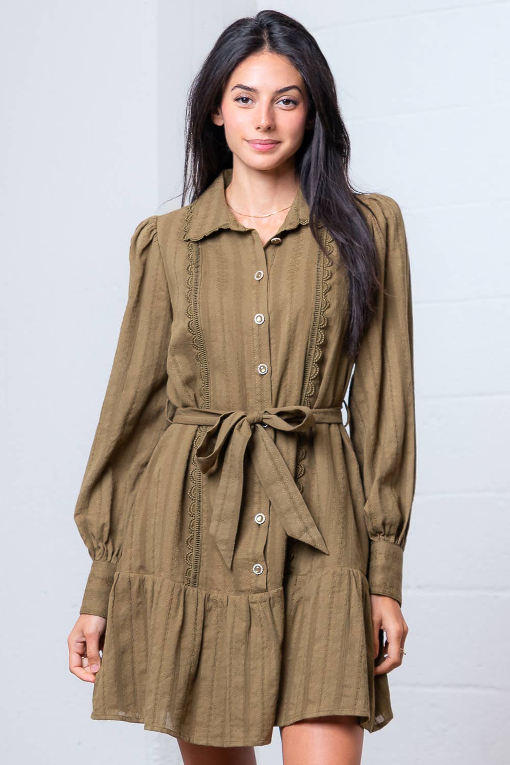 HT28837T-LONG SLV WITH COLLAR BUTTON DOWN FLOWER EMBO SHIRT