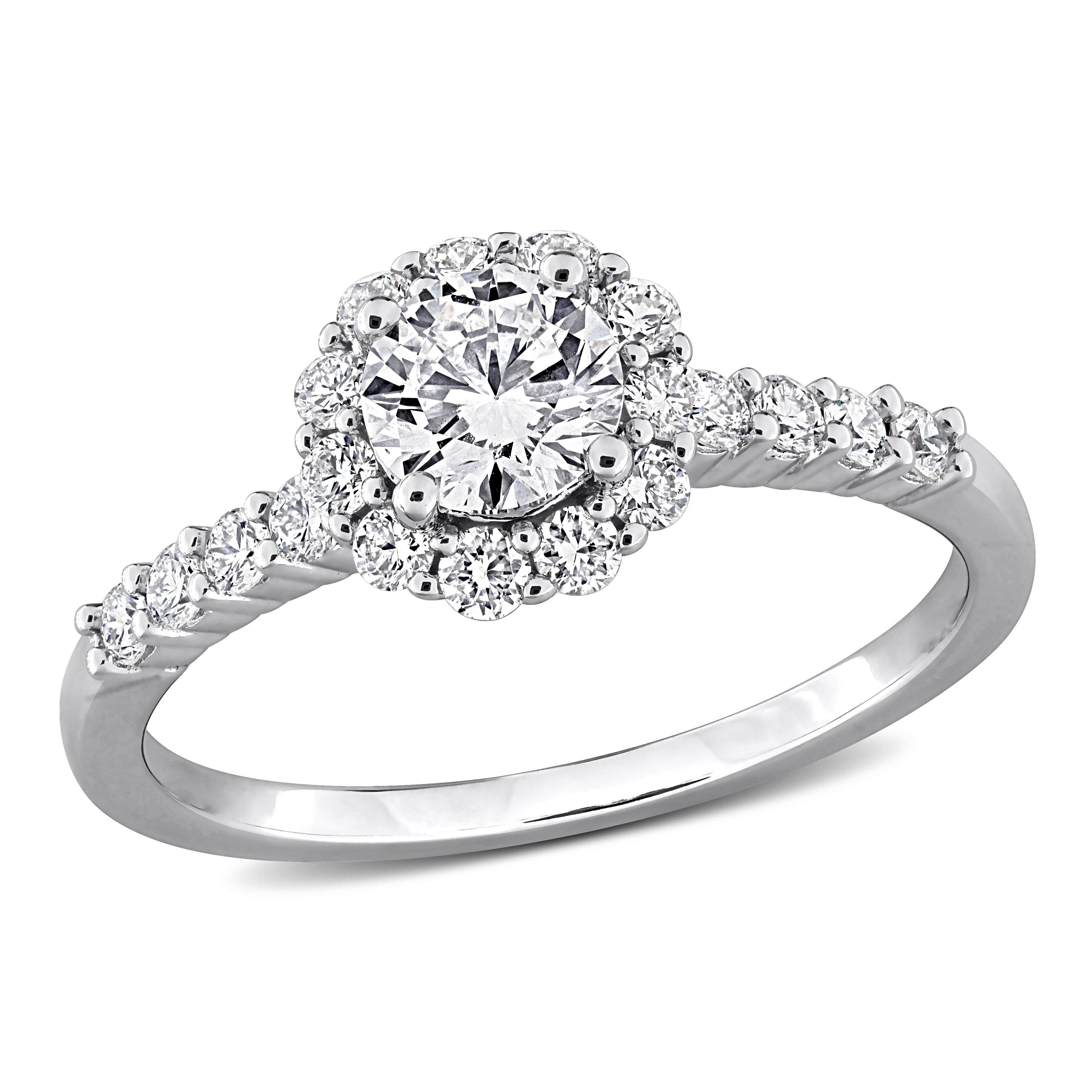 Plum Blossom Moissanite Engagement Ring in Sterling Silver