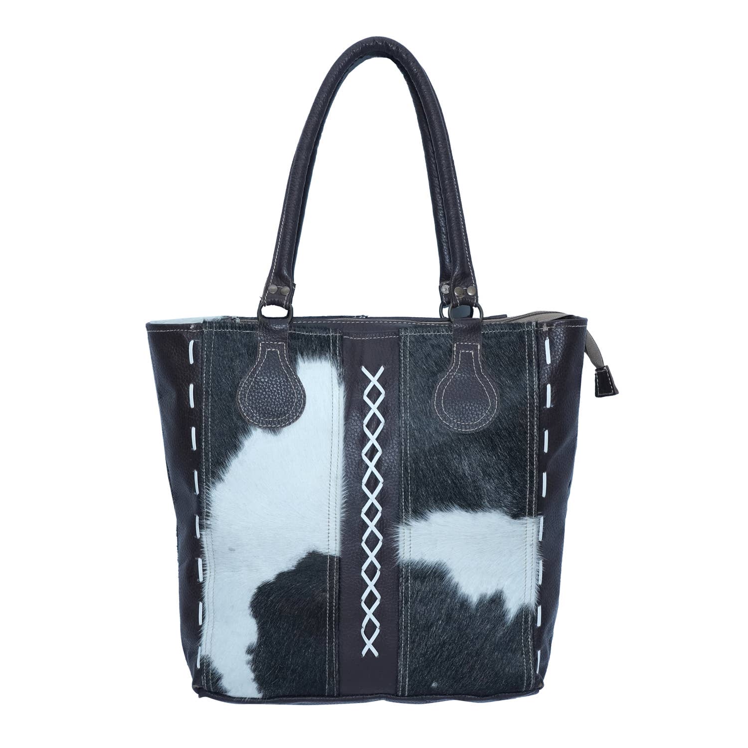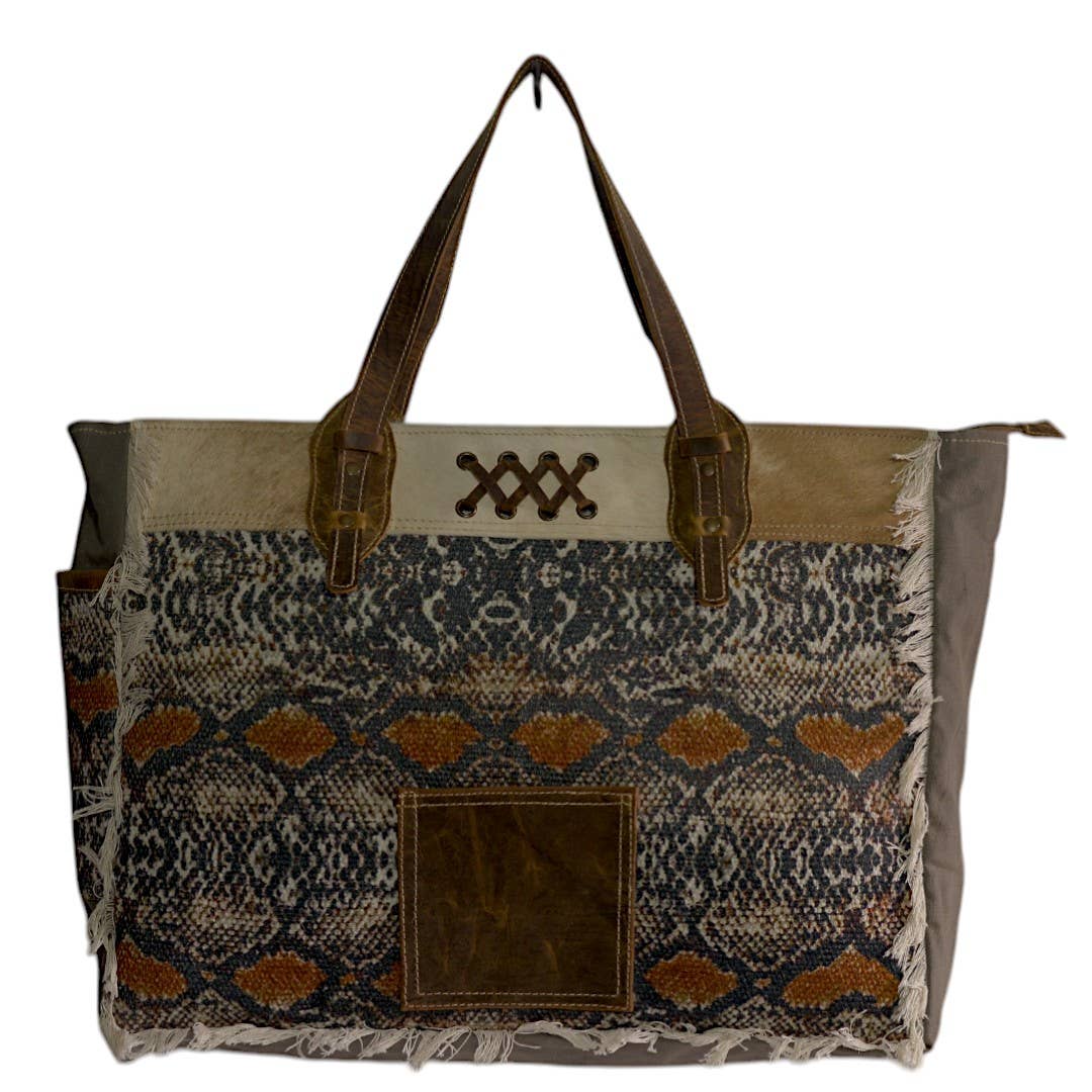 Eco-chic at its best! Our wholesale handmade tote bags redefine sustainable fashion. Crafted from upcycled rug, canvas, luxurious leather, and a touch of hairon, each piece is a unique masterpiece. Complete with inner lining and a discreet back pocket, these bags seamlessly blend style and sustainability.