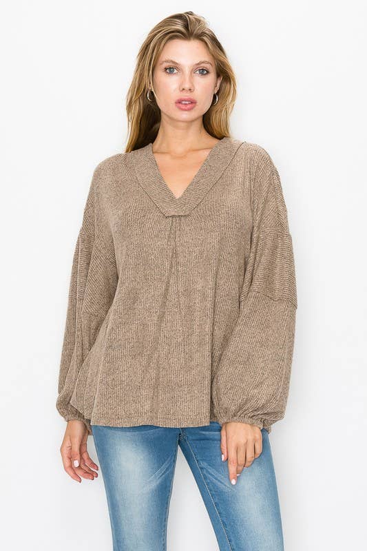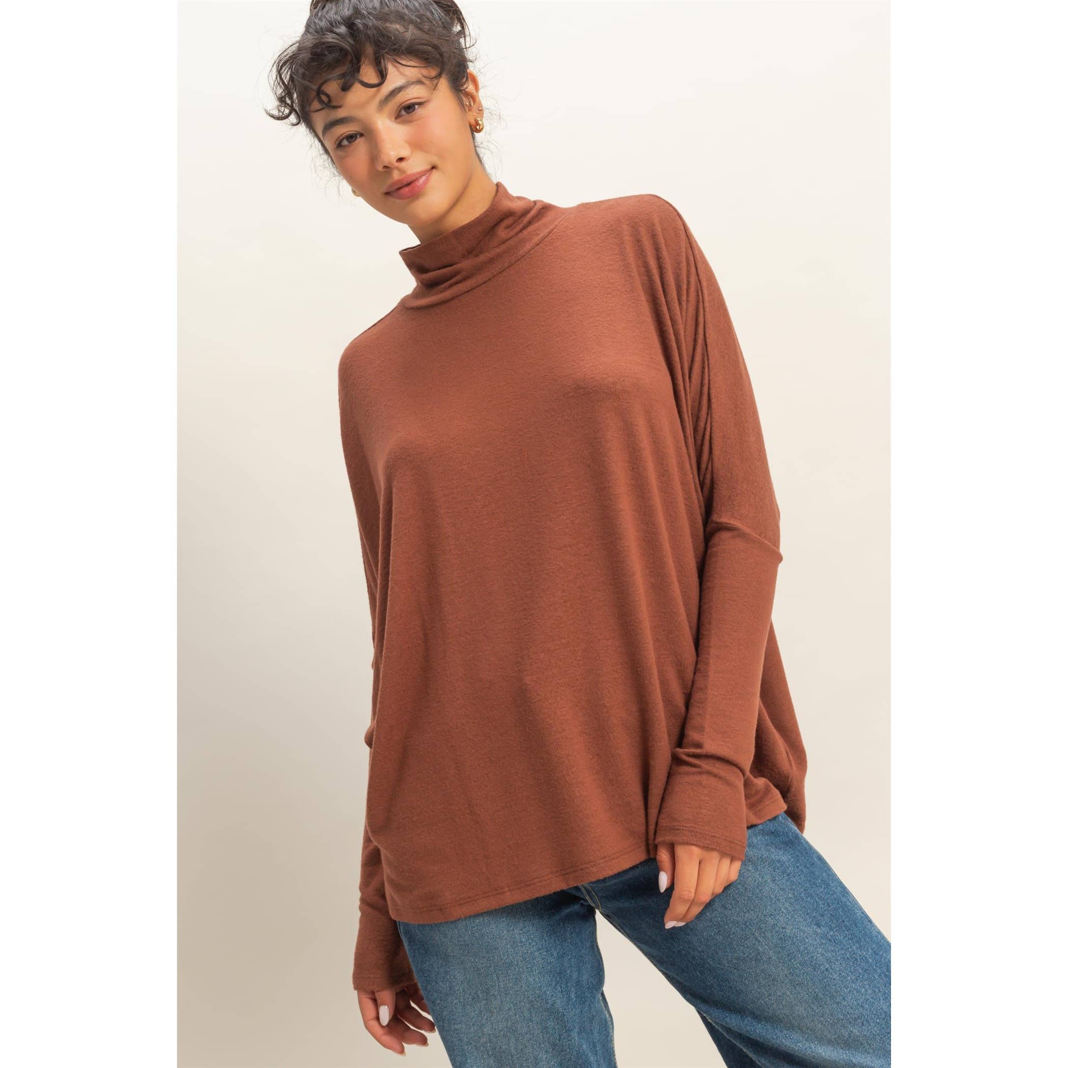 Wholesale Turtle Neck Long Dolman Sleeve Brushed Knit Top, T534