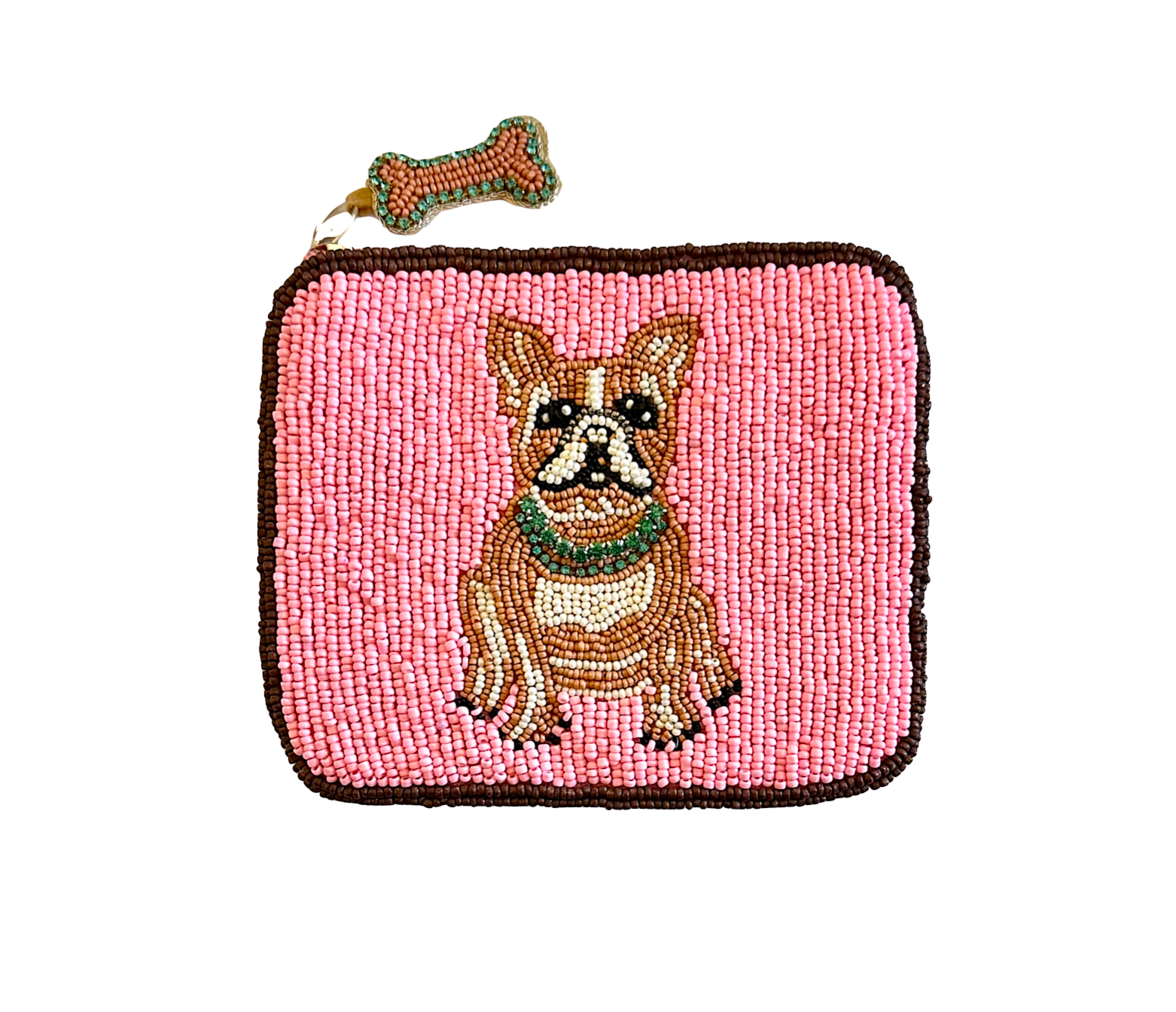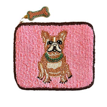 Ladies Fully Beaded WHITE DOG MOM Coin Purse