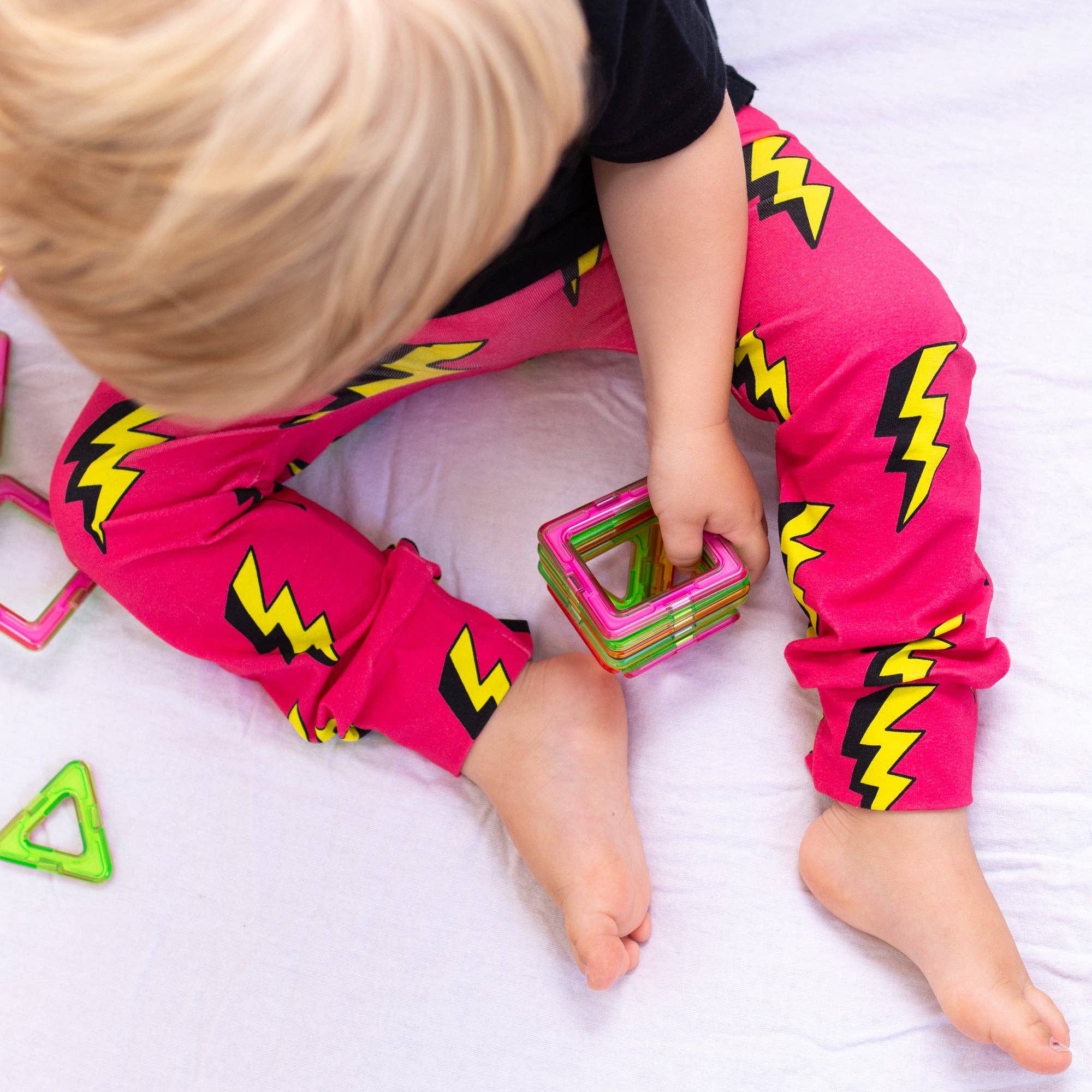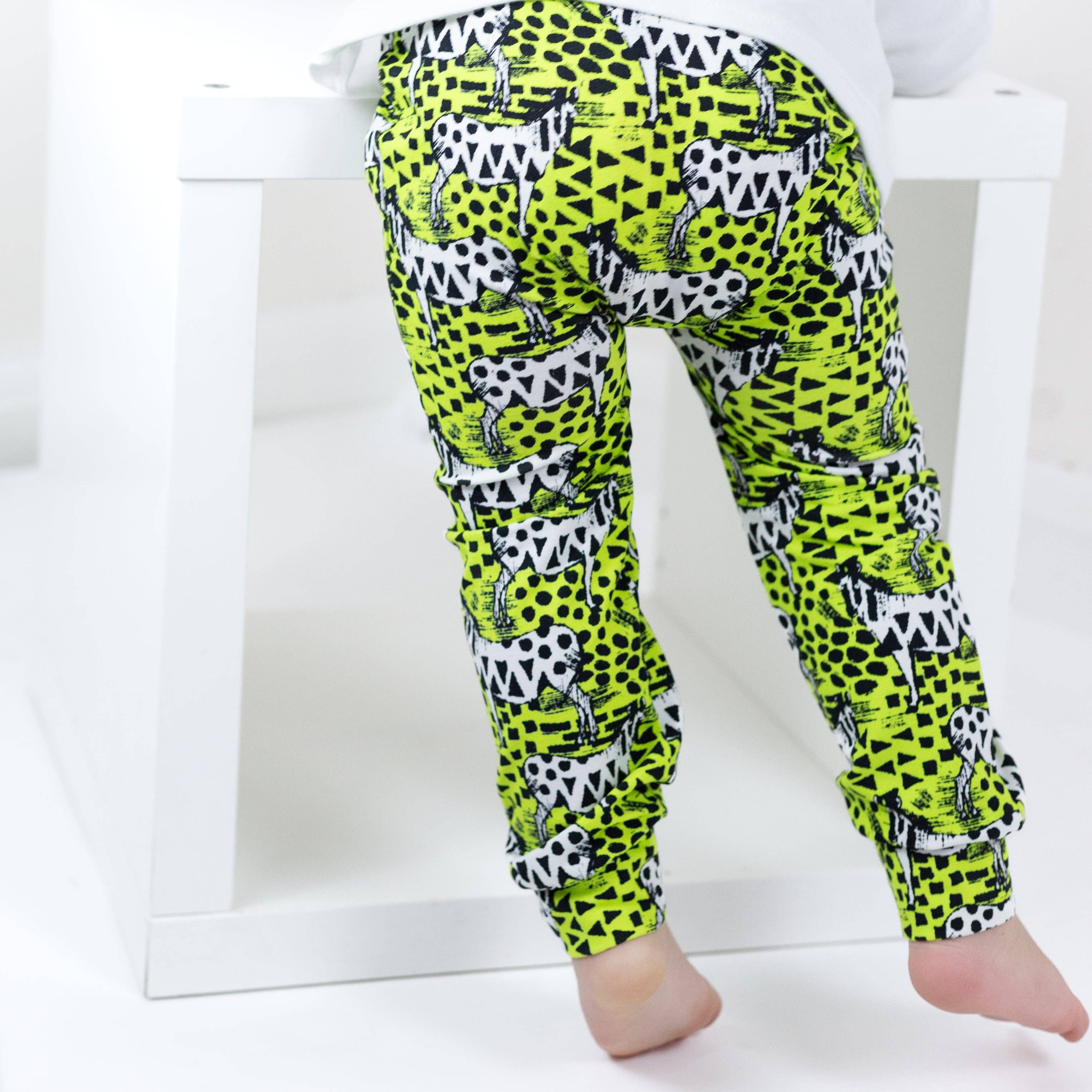 Our new Pink Squiggle print leggings are made in the UK from 95% Cotton 5 % Elastane We carefully select our fabrics to ensure they are kind to babies skin and gorgeously soft and comfortable for little legs. All of our fabrics are OEKO-TEX STANDARD 100 CERTIFIED . All seams are overlocked inside for a quality finis. Fred & Noah baby leggings feature an enclosed non roll elasticated waist and are available in sizes 0-6. The leggings also feature a reversible ankle cuff which can be turned up for shorter babies whilst also keeping their little socks on .All of our styles are cut for both disposable and cloth nappies and can be mixed and matched with our range of hand printed vests and T shirts . Made in Britain As parents to two children we understand the need for durable, comfortable children's clothing. Bright colours can fade so wash inside out - Machine washable on a 30 cycle, do not tumble.