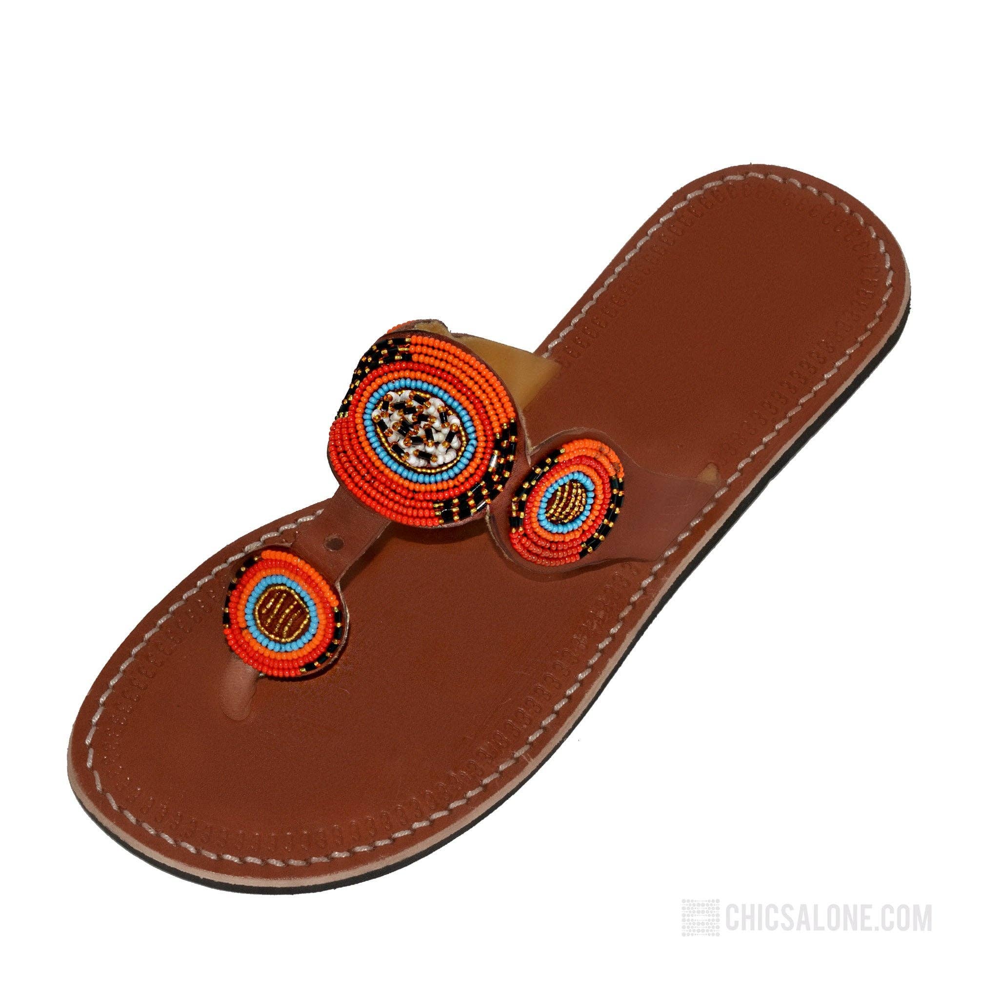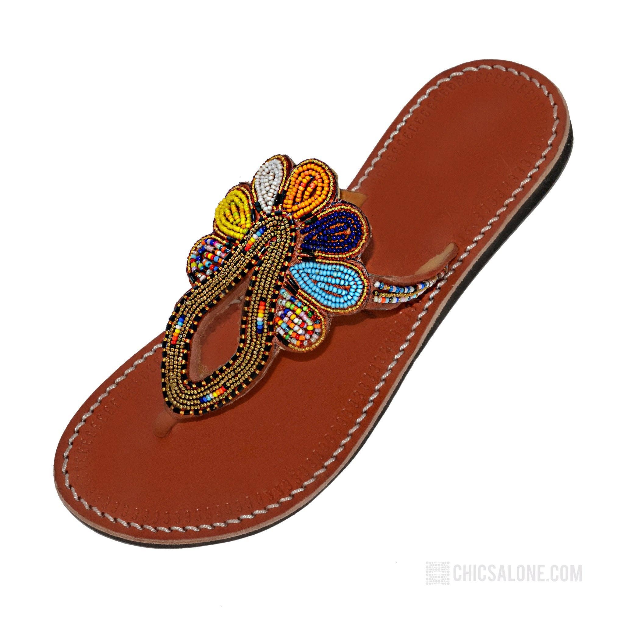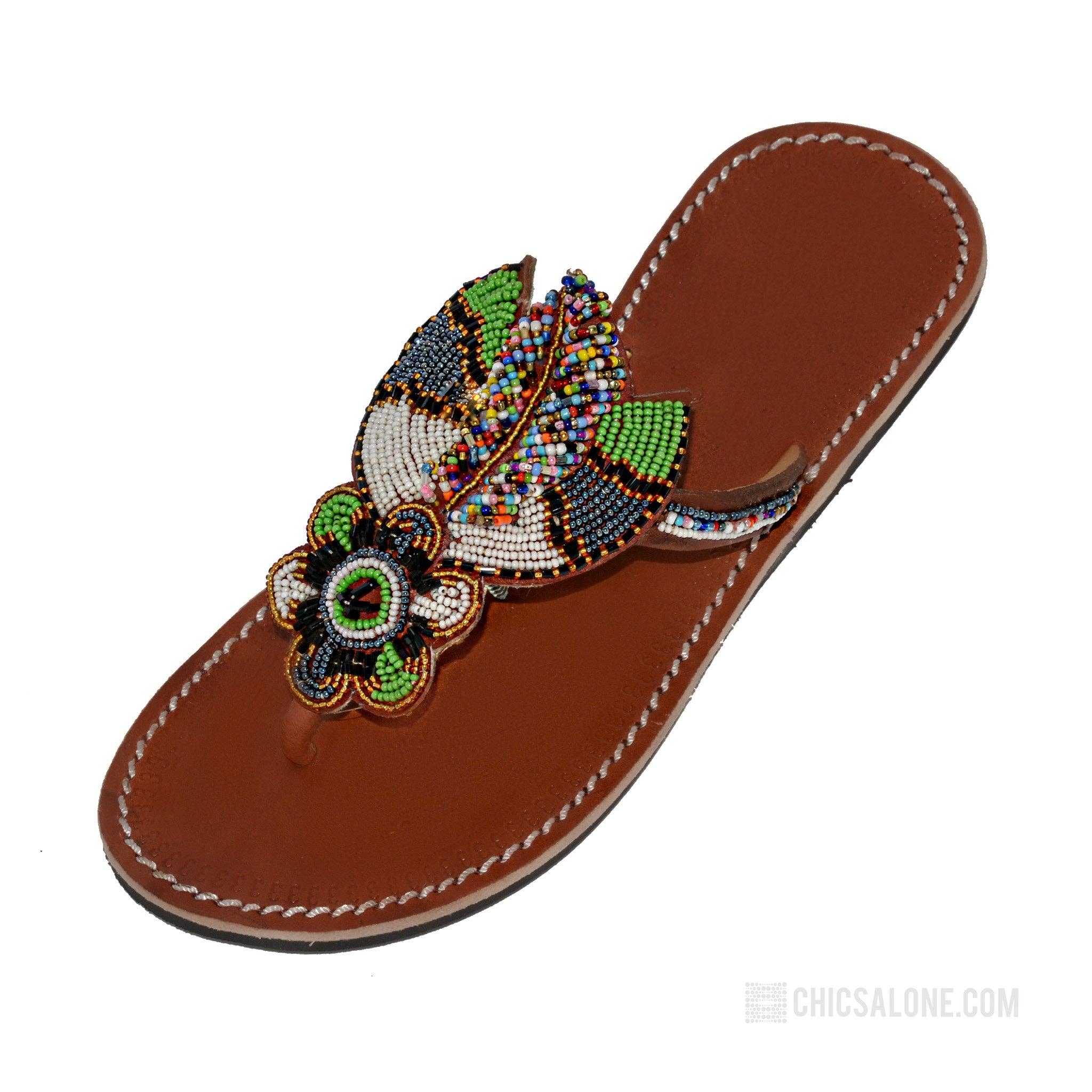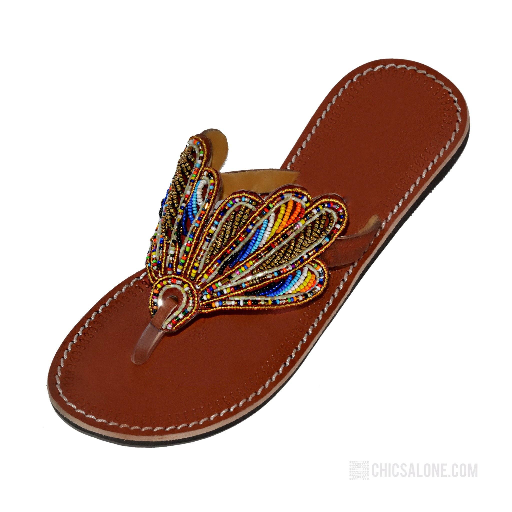 We have an inventory of 130 sandals at liquidation prices Send message. Inventory on store only represents a sample. Make offer for all sandals. Quality hand-crafted African Masai leather sandals. Produced by skilled artisans in Kenya. Modern, comfortable and stylish for your tropical vacation, resort wear or everyday fashion in the sun. Fast FREE Shipping. Upper:Real leather with colorful intricate bead design, white stitching and lined with suede for comfort Sole: Soft, Durable and Flexible Black Rubber Individually handmade with natural color imperfections in the leather making each sandal unique. Half sizes should purchase next size up. Your purchase gives back to the communities who supply these sandals.