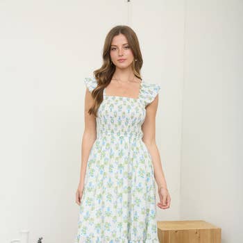 SKU: D-10562-JK, D-10562-JK, D-10562-JK Made in China Aesthetic: Bohemian and Classic Care Instructions: Hand wash Dress Style: A-line, Fit & Flare, and Maxi Embellishment: Pleat, Ribbon, and Ruffles Fabric: 100% Cotton Fit: Contemporary and Junior Neckline: Sweetheart Occasion Theme: Baby Shower, Mother's Day, and Wedding Occasion: Day Party and Wedding Guest Pattern: Floral Season: Spring/Summer Skirt & Dress Length: Midi Sleeve Length: Sleeveless Product Language: English