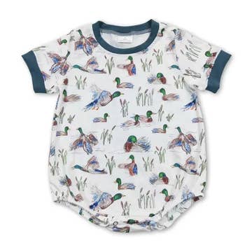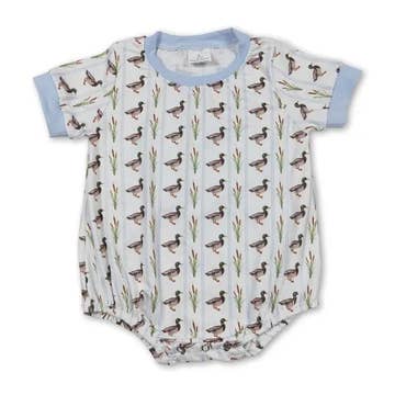 Wholesale Short sleeves duck dog deer light blue baby boy romper