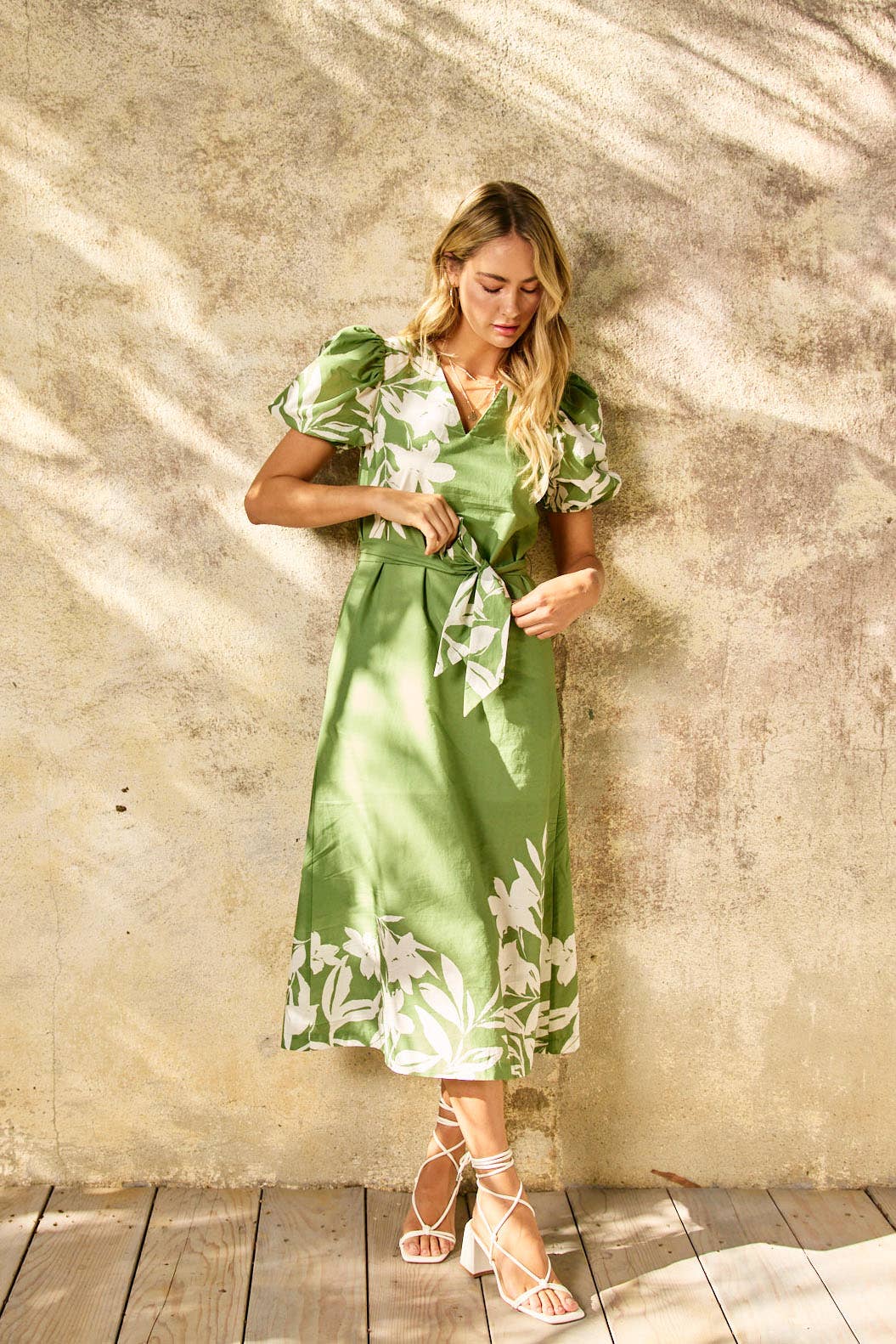 WOVEN KNIT COMBO LONG SLEEVES CUFF SMOCKING ROUND NECK MODEL WEARS A SIZE SMALL