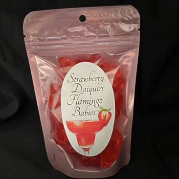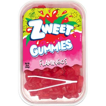 Balancing on one leg, each of these soft and chewy gummi pink flamingos features a subtle fruity taste and pink color.