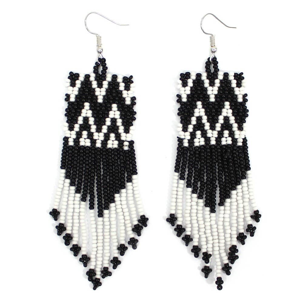 Beaded Handwoven Guajira Square Earrings (Cream/Black)