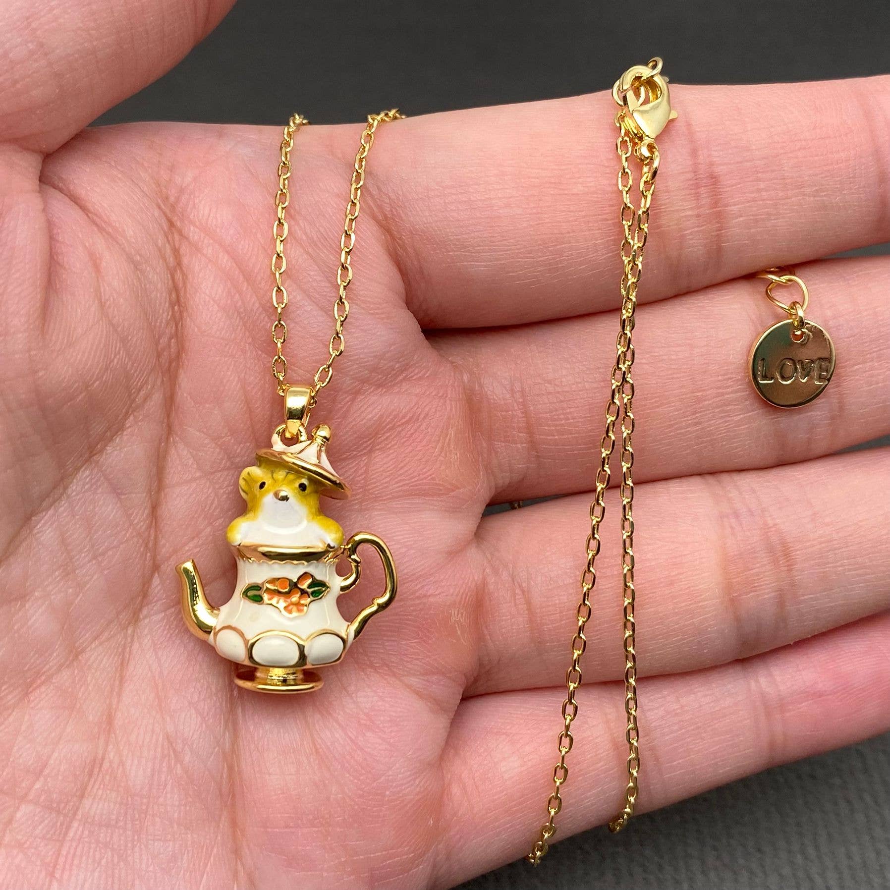 Colorful Enamel 5 Teacups Linked Charm Necklace