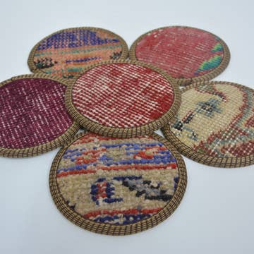 Our coasters features a neutral hue and beautiful organic texture and fits perfectly with a variety of interior design styles. The coasters are include a matching storage box. Set includes 6 coasters and matching holder. Natural color variations make each coaster unique. Coaster size: 4" diameter Holder size: 5" diameter x 2" height Care: Spot clean and air dry