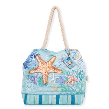 Seashell Blue Beach Collage - Beach Canvas Tote Bag DTG Printed, Single Sided Print 18"W - 14"H - 4 And A Half Inch Deep Large Main Compartment Zipper Front Zipper Pocket 12 Oz Heavy Cotton 24 and a half inch Self Fabric Handles 8 and half inch handle drop Cruel Summer Logo - Taylor Inspired Canvas Zipper Tote Printed in North Carolina with the latest Direct to Garment printing technology. ABOUT OUR INK: You won't experience fading or cracking. We print with water based inks that are also non harmful to the environment :)
