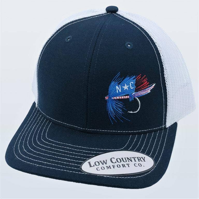 Our North Carolina Flag Flounder Navy/White Hat is a unique blend of style and comfort. This unisex trucker snapback, adorned with a distinctive North Carolina flag design, is not just a hat but a symbol of state pride. Decorated right here in the USA, it reflects the quality and craftsmanship that Riverbed Threads is renowned for. As a veteran-owned business, we take immense pride in our products, ensuring each piece is a testament to our dedication to detail. With this hat, experience the comfort and style that makes us a favorite among local communities.