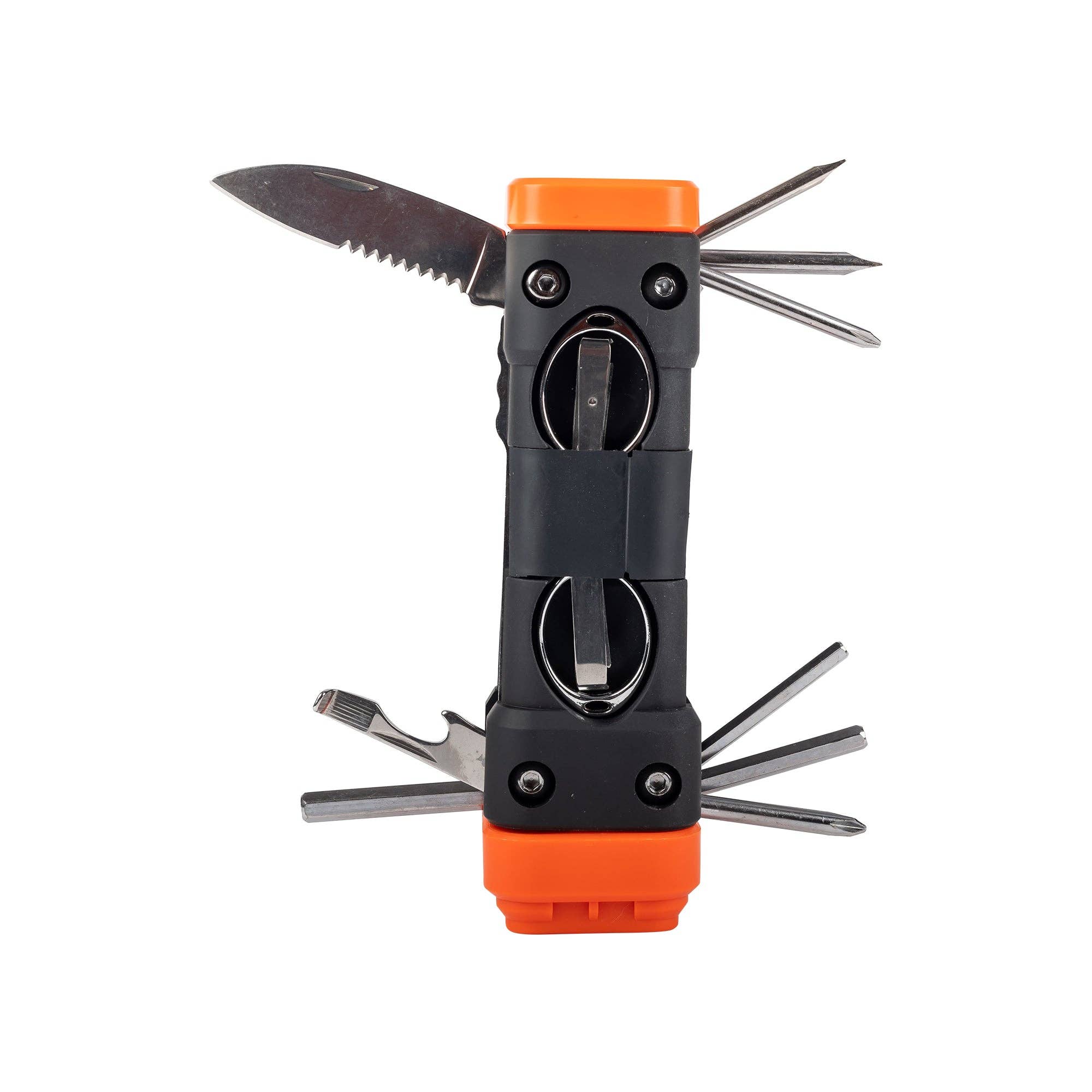 This small but mighty tool has 12 functions, fits in your wallet, and is compliant with all TSA rules. Made in the USA from heat-treated stainless steel, the PocketMonkey multi-tool won't bend, break, or rust. Helps you conquer everyday tasks with a full set of tools: * Phillips, Flat, Micro Screwdrivers * Bottle Opener * 6 Wrenches * Orange Peeler * Letter Opener * Ruler * And more!