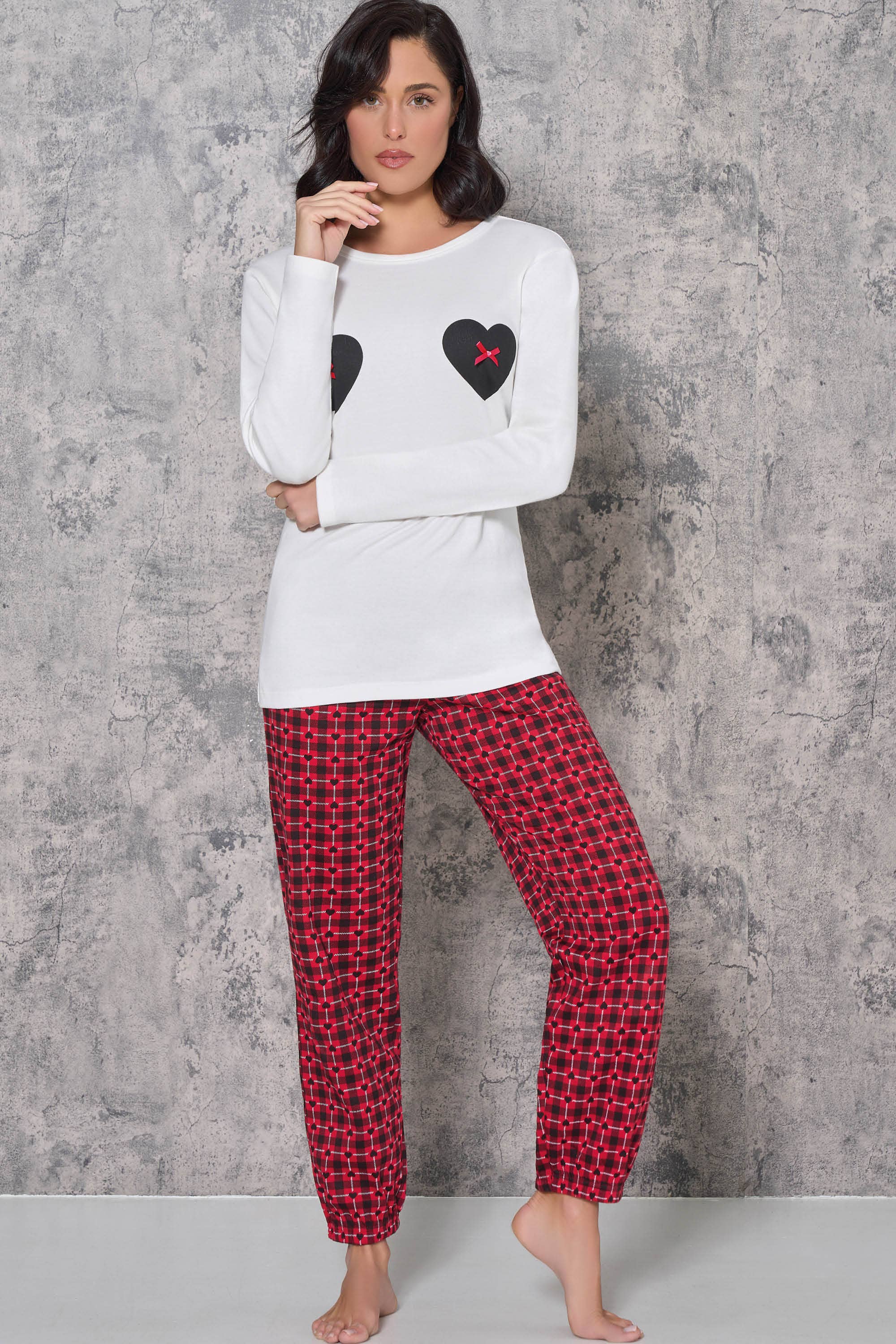96199 Serafino Pajamas in Interlock (Warm Cotton). Long sleeve and jogger Sizes: XS - S - M - L - XL Colors: Wine/Rose - Blue/Sky