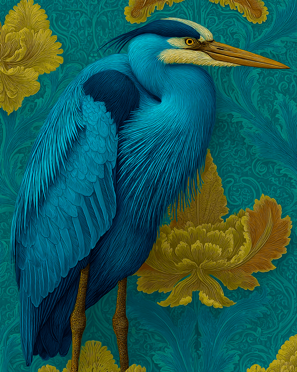 8 x 10 Great Blue Heron and Iris Art Print