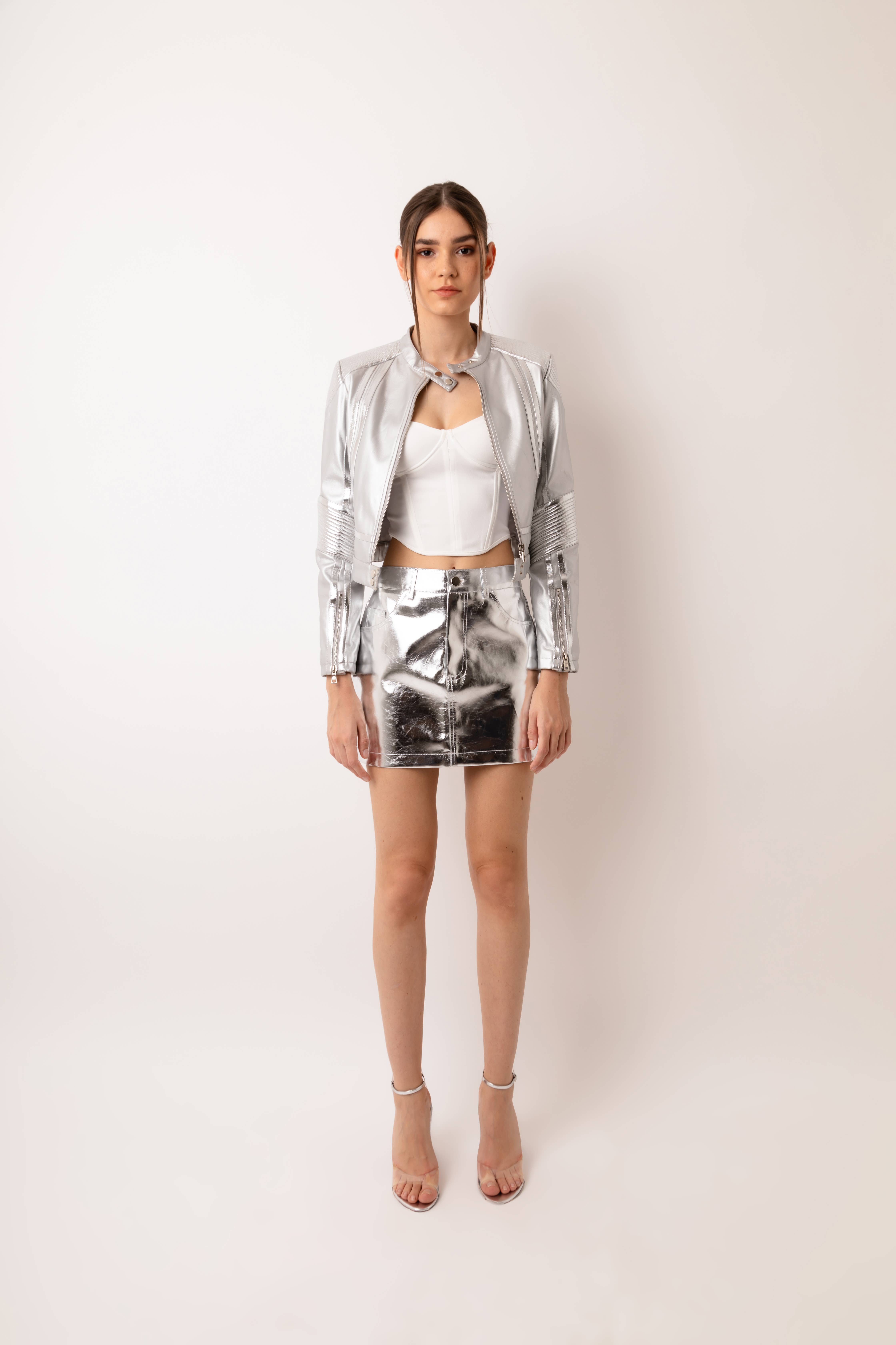 Biker jacket with belt, 2 zip pockets, zip closure ,zipped cuffs