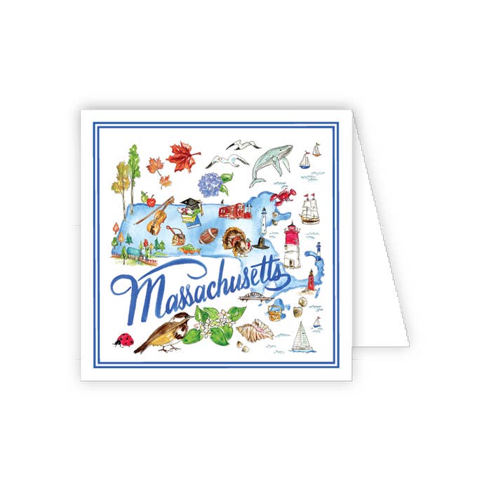 Rhode Island is known for sandy shores and seaside Colonial towns. It's home to several large cities, including Newport, which is famed for sailing and Gilded Age mansions, such as The Breakers. Providence, its capital, is home to Brown University, green Roger Williams Park, landscaped Waterplace Park and Riverwalk, with the famed WaterFire art installation. Anyone from this tiny state, or anyone who loves Rhode Island would love this tribute to the Ocean State. All cards are blank on the inside, A2 size, and are shipped with an envelope. They are printed on American-made cream 80lb cardstock and are shipped in a biodegradable clear sleeve with a recycled backing board so that nothing gets crinkled.