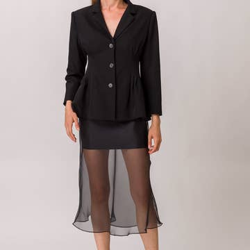 M10 Textured Black Hollow-Back Suit Jacket with Waist Tie for wholesale on Faire10