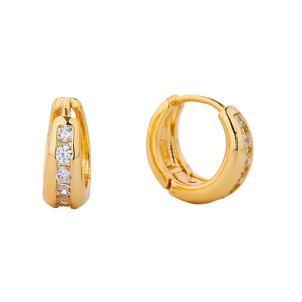 Wholesale 24K Gold Filled CZ Multicolor Geometric Huggies | AD757