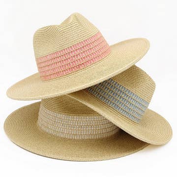 Multi-Colored Stitched Brim Panama Hat