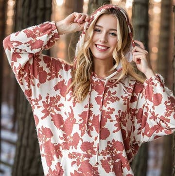 Dusty Rose Ladies Raglan Pullover Hood Flower Branch